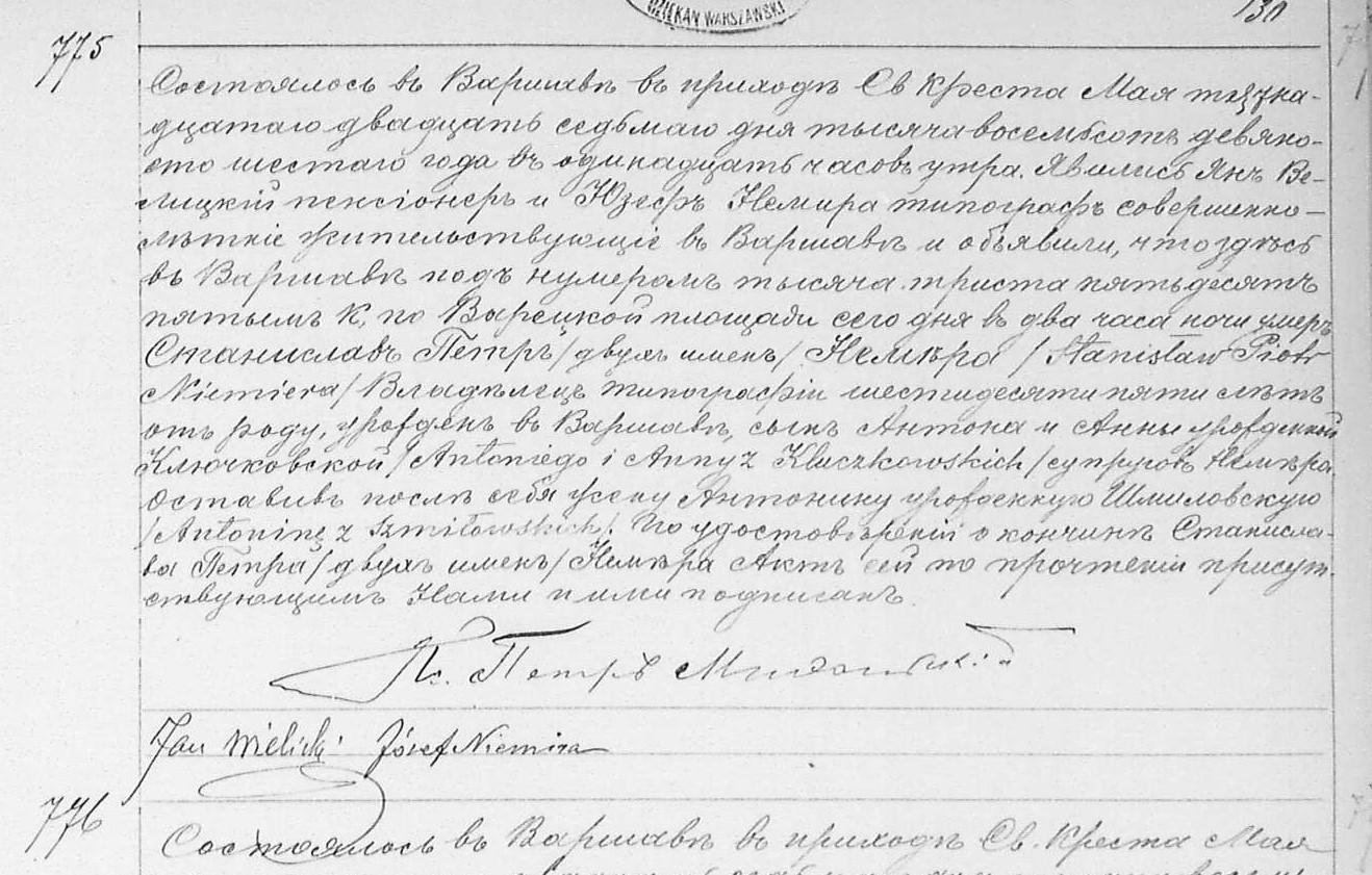 | sw.491334 | sw.491334 | sw.273079 (sw.273079) | sw.273082 (sw.273082) | Akt urodzenia: Warszawa św. Krzyż (obecn. m. Warszawa), 279/1874 [indeks na http://geneteka.genealodzy.pl/] http://szukajwarchiwach.pl/72/158/0/-/93/skan/full/4IodJbxAW5LrHAEB_6prSQ |