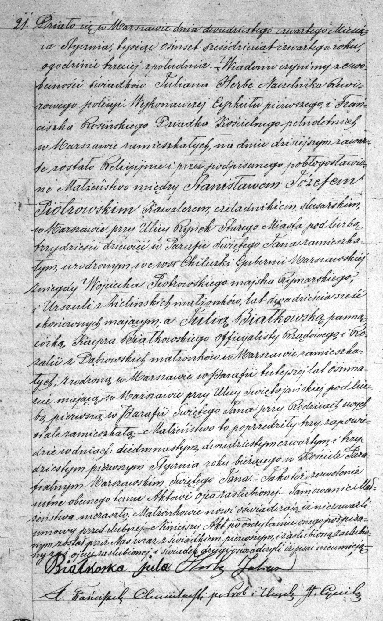 | sw.274737 | sw.274352 (sw.274352) | sw.274353 (sw.274353) | Akt małżeństwa: Warszawa św. Jan (obecn. m. Warszawa), 21/1864 [indeks na http://geneteka.genealodzy.pl/] http://metryki.genealodzy.pl/metryki.php?op=kt&ar=8&zs=9233d&sy=327&kt=2 [podgląd] |