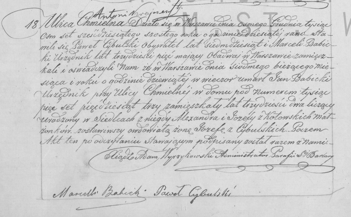 | sw.275251 | sw.275252 (sw.275252) | | | 1858 | | xpar.1450 | Akt małżeństwa: Warszawa św. Krzyż (obecn. m. Warszawa), rok 1858, nr aktu 366 [indeks na http://geneteka.genealodzy.pl/] | | | Akt ślubu obecny w bazie Geneteka |
