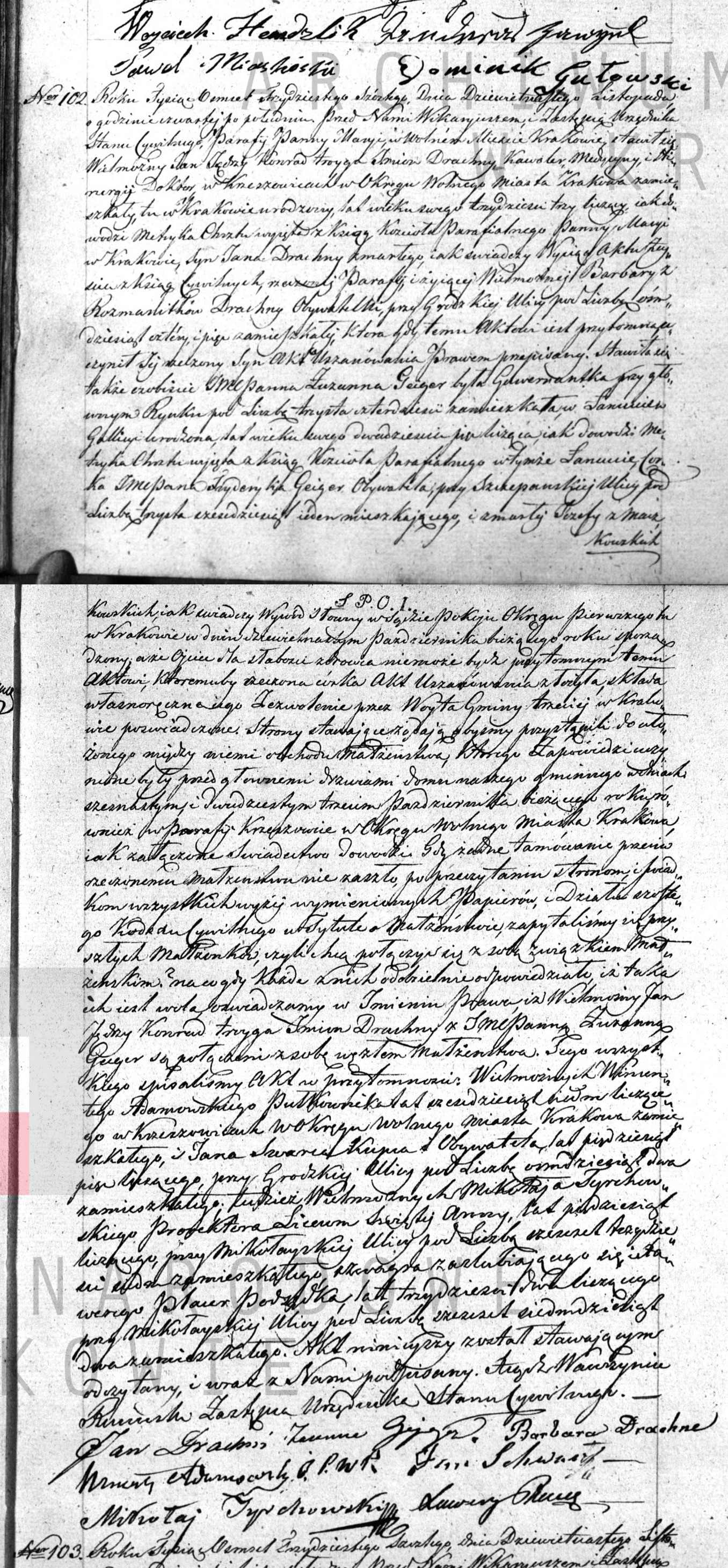 | sw.276424 | sw.276559 | sw.276560 (sw.276560) | sw.276561 (sw.276561) | Akt małżeństwa: Kraków WNMP (Mariacki) (obecn. woj. małop.), 84/1819 [indeks na http://geneteka.genealodzy.pl/] https://szukajwarchiwach.pl/29/328/0/2/35/skan/full/qkJkJki_cwVW-OMUjZCfmA [podgląd] |