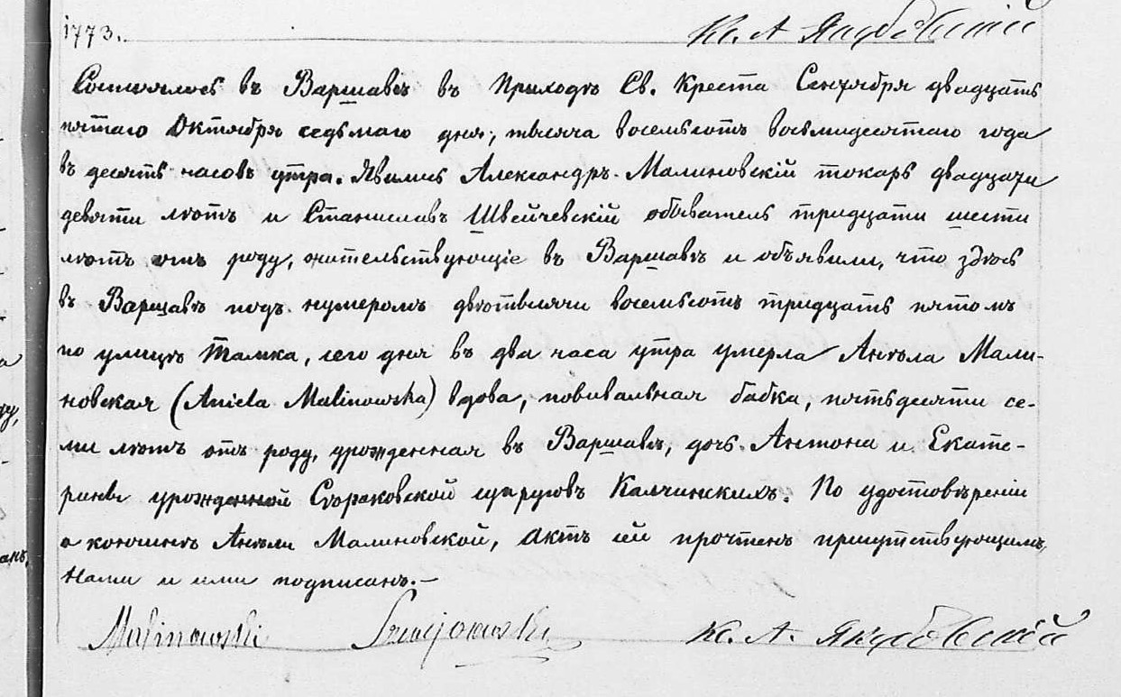 | sw.431432 | m | Antoni | | | | | Kałczyński | | | | | Akt małżeństwa: Warszawa św. Andrzej (obecn. m. Warszawa), 121/1853 [indeks na http://geneteka.genealodzy.pl/] http://szukajwarchiwach.pl/72/159/0/-/23/skan/full/jzFgtwoLygztw1U3JpLp-Q [podgląd] |