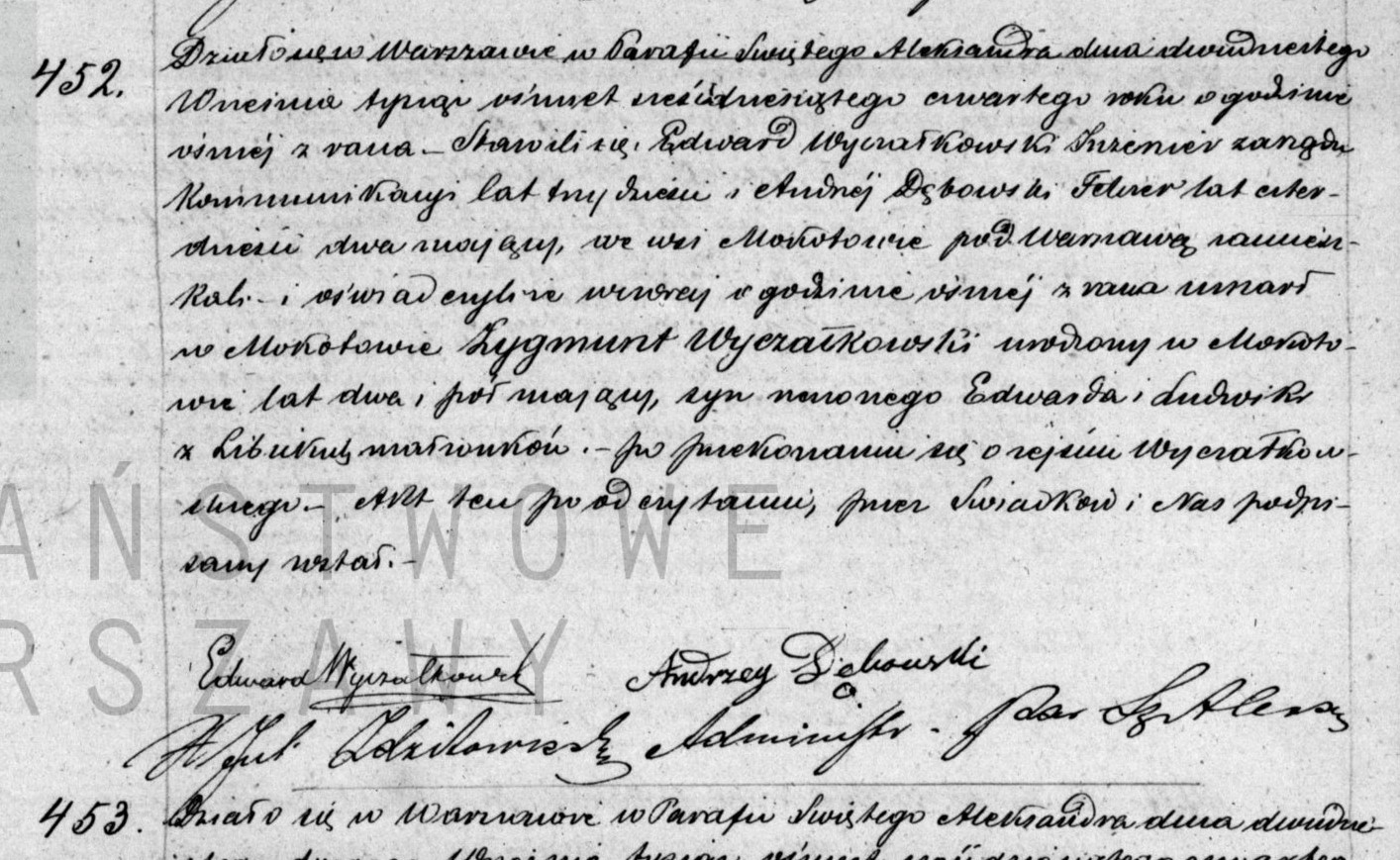 | sw.1137316 | m | Edward | Wyczałkowski | Akt małżeństwa: Warszawa św. Krzyż (obecn. m. Warszawa), 237/1914 [indeks na http://geneteka.genealodzy.pl/] https://szukajwarchiwach.gov.pl/jednostka/-/jednostka/12478085 [podgląd] | ||||||||