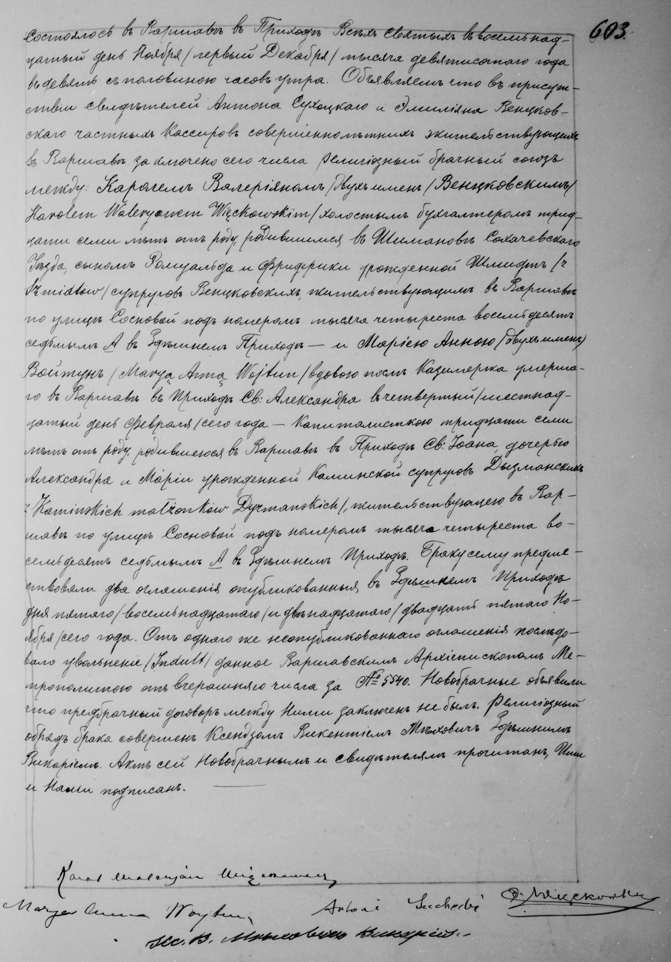 | sw.288443 | sw.288443 | sw.284898 (sw.284898) | sw.284899 (sw.284899) | Akt małżeństwa: Warszawa Wsz. Św. (obecn. m. Warszawa), 603/1900 [indeks na http://geneteka.genealodzy.pl/] http://metryki.genealodzy.pl/metryka.php?ar=8&zs=9264d&sy=324&kt=1&skan=603.jpg [podgląd] |