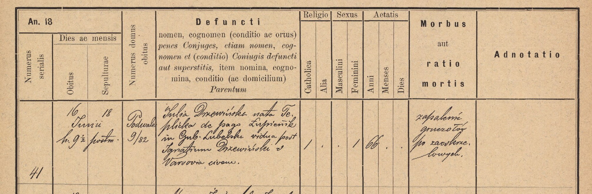 | genetekaz.11058316 | 16 | jun | 1891 | | xpar.480 | Akt zgonu: Kraków św. Szczepana (obecn. woj. małop.), 093_41/1891 https://szukajwarchiwach.pl/29/331/0/2#tabZespol [podglad] | | Akt zgonu obecny w bazie Geneteka |