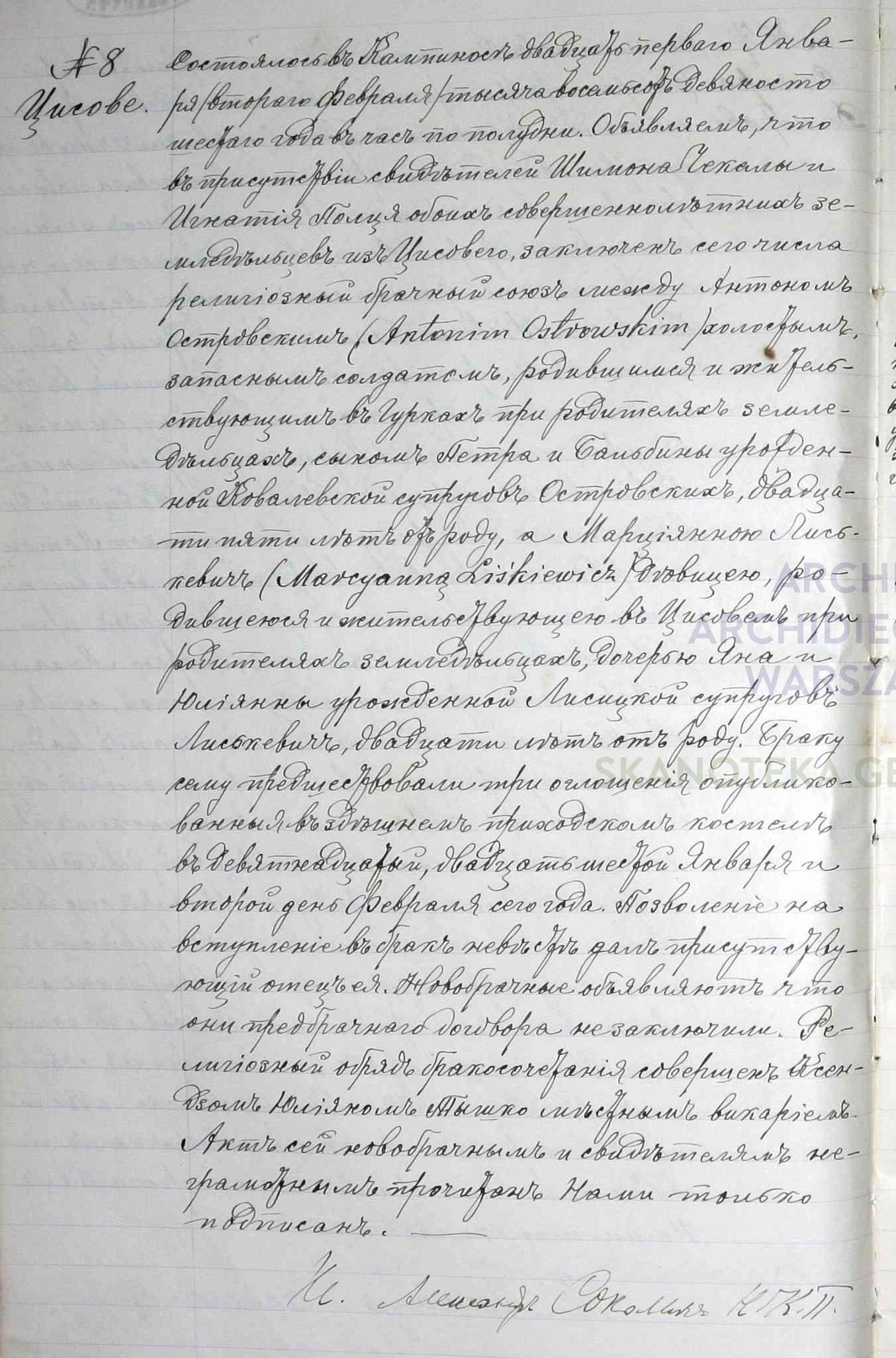 | sw.785236 | sw.791782 | sw.784755 (sw.288243) | sw.784756 (sw.288244) | Akt małżeństwa: Leoncin (obecn. woj. mazow.), 29/1887 [indeks na http://geneteka.genealodzy.pl/] http://metryki.genealodzy.pl/metryki.php?op=kt&ar=2&zs=0861d&sy=120&kt=5 |