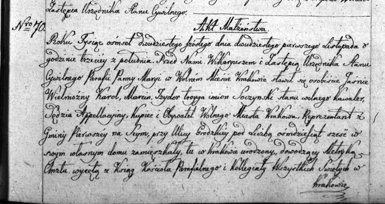 | sw.505127 | sw.505127 | sw.505128 (sw.289645) | sw.505129 (sw.289646) | Akt małżeństwa: Kraków WNMP (Mariacki) (obecn. woj. małop.), 70/1826 [indeks na http://geneteka.genealodzy.pl/] http://szukajwarchiwach.pl/29/328/0/2/63/skan/full/XkKLyCOd6pujH9sI6EXSLg [podgląd] |