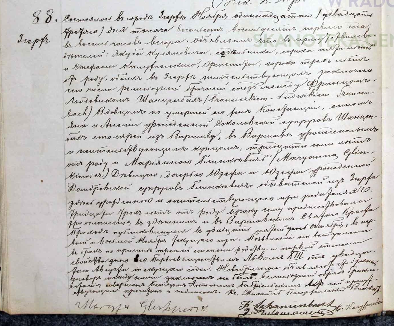 | sw.292836 | | | 1837 | | | | rodzi mu się dziecko | Akt małżeństwa: Zgierz (obecn. woj. łódz.), 88/1881 [indeks na http://geneteka.genealodzy.pl/] http://metryki.genealodzy.pl/metryka.php?ar=3&zs=1748d&sy=1881&kt=2&skan=87-90.jpg [podgląd] |