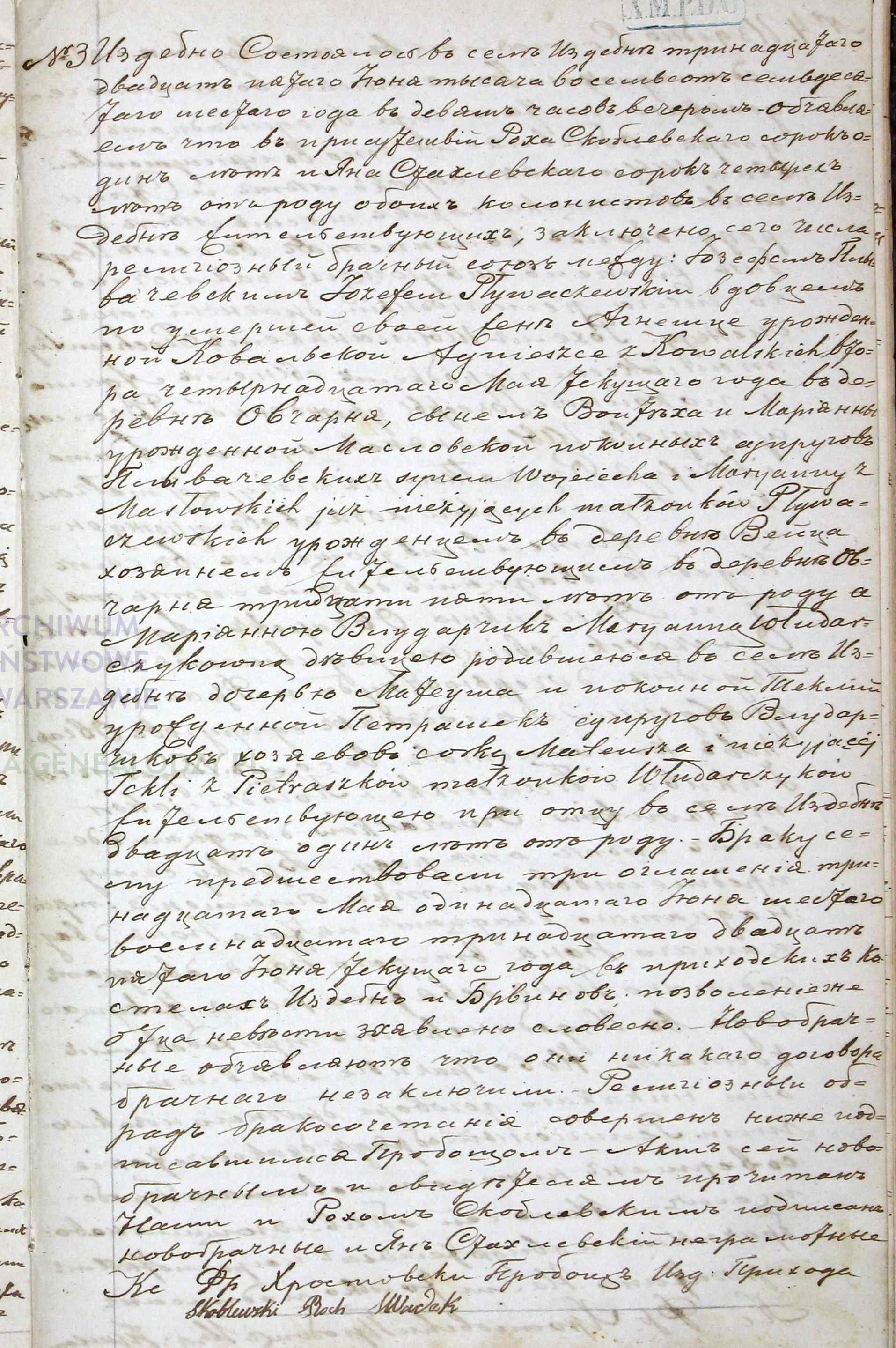 | sw.295766 | sw.295766 | sw.293294 (sw.293348) | sw.293295 (sw.293295) | Akt małżeństwa: Izdebno Kościelne (obecn. woj. mazow.), 3/1876 [indeks na http://geneteka.genealodzy.pl/] http://metryki.genealodzy.pl/metryki.php?op=kt&ar=2&zs=0069d&sy=1876&kt=2 [podgląd] |