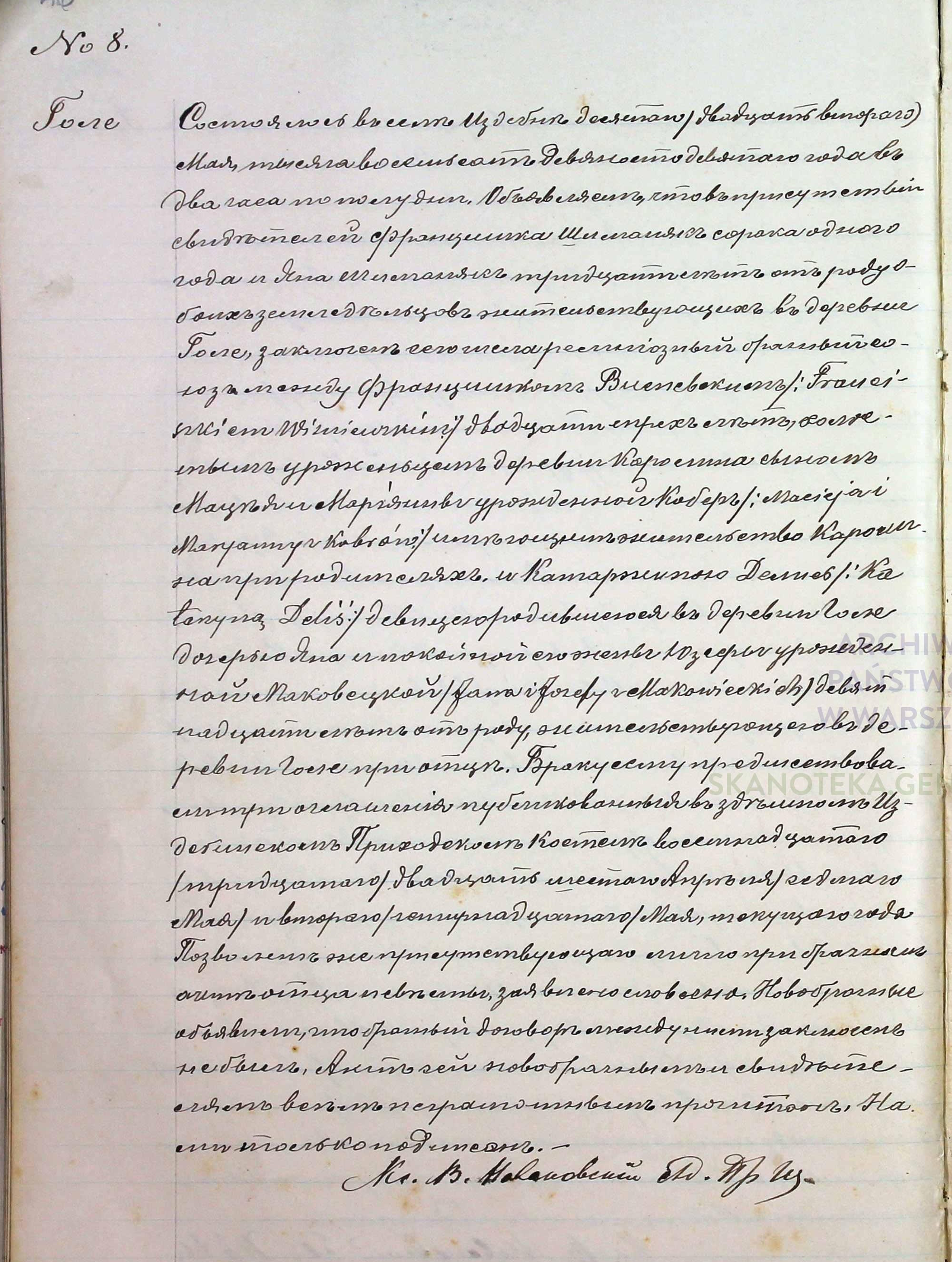 | sw.488692 | sw.488704 | sw.293480 (sw.293480) | sw.295230 (sw.295230) | Akt małżeństwa: Izdebno Kościelne (obecn. woj. mazow.), 8/1899 [indeks na http://geneteka.genealodzy.pl/] http://metryki.genealodzy.pl/metryka.php?ar=2&zs=0069d&sy=1899&kt=2&skan=08-09.jpg [podgląd] |