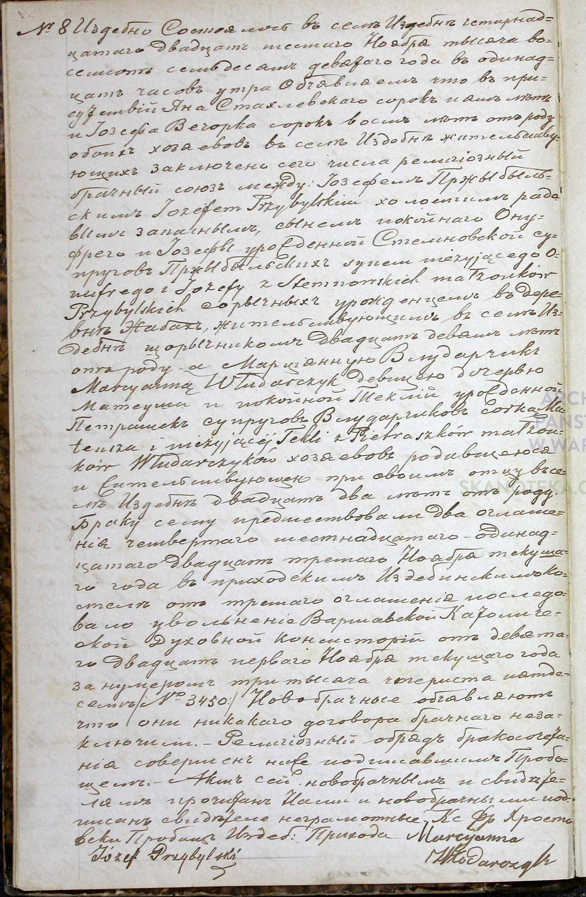 | sw.295762 | sw.293294 (sw.293348) | sw.293295 (sw.293295) | Akt małżeństwa: Izdebno Kościelne (obecn. woj. mazow.), 8/1879 [indeks na http://geneteka.genealodzy.pl/] http://metryki.genealodzy.pl/metryki.php?op=kt&ar=2&zs=0069d&sy=1879&kt=2 [podgląd] |