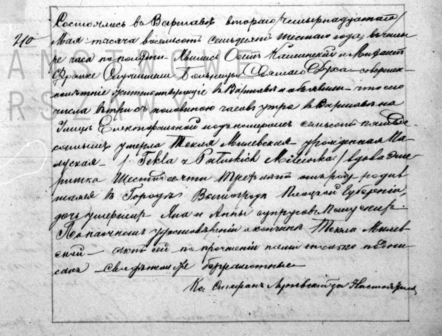 | genetekaz.8255383 | 14 | may | 1876 | | xpar.1443 | Akt zgonu: Warszawa św. Andrzej (obecn. m. Warszawa), 210/1876 http://metryki.genealodzy.pl/metryki.php?op=kt&ar=1&zs=0159d&sy=1876&kt=3 [podglad] | | Akt zgonu obecny w bazie Geneteka |