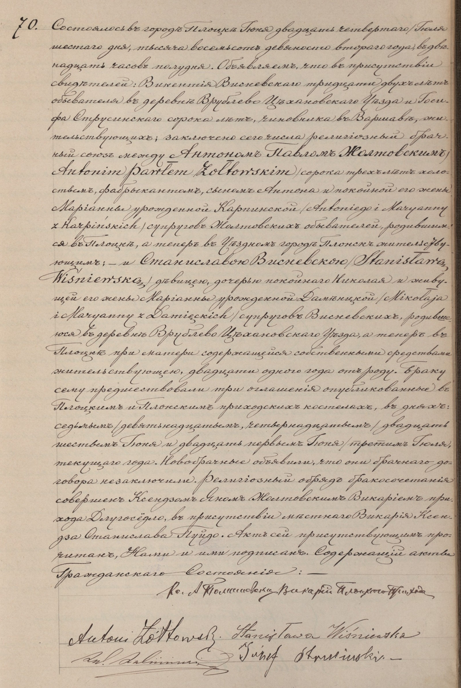 | sw.310729 | sw.310728 (sw.310728) | | | 1892 | | xpar.724 | Akt małżeństwa: Płock (obecn. woj. mazow.), rok 1892, nr aktu 70 [indeks na http://geneteka.genealodzy.pl/] http://szukajwarchiwach.pl/50/155/0/-/130#tabSkany [podgląd] | | | Akt ślubu obecny w bazie Geneteka |