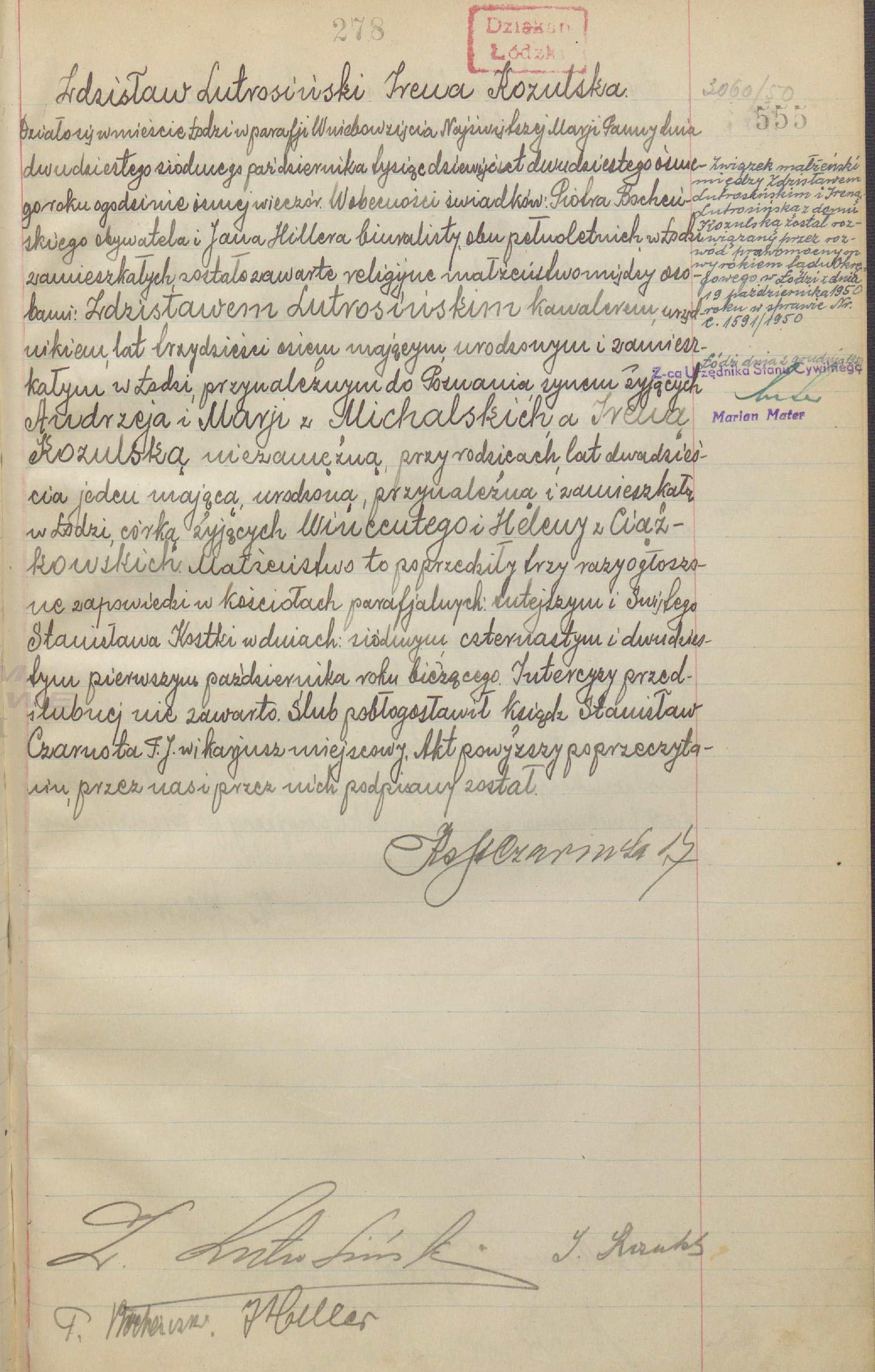 | sw.320286 | sw.317489 (sw.317489) | sw.317490 (sw.297071) | Akt małżeństwa: Łódź NMP (obecn. woj. łódz.), 113/1896 [indeks na http://geneteka.genealodzy.pl/] http://metryki.genealodzy.pl/metryki.php?op=kt&ar=3&zs=1562d&sy=1896&kt=3 [podgląd] |
