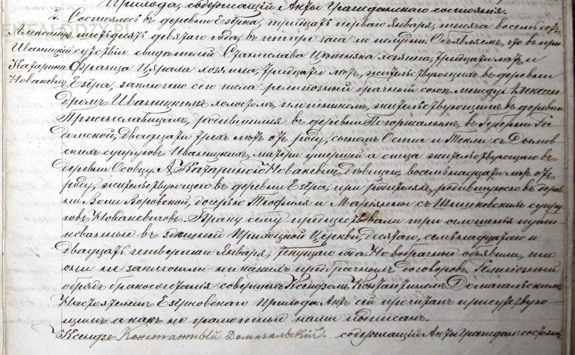 | sw.323224 | sw.323224 | sw.320956 (sw.320956) | sw.320957 (sw.320957) | Akt małżeństwa: Jeziórka (obecn. woj. mazow.), 2/1869 [indeks na http://geneteka.genealodzy.pl/] http://metryki.genealodzy.pl/metryka.php?ar=2&zs=1300d&sy=76&kt=2&skan=01-02.jpg [podgląd] |