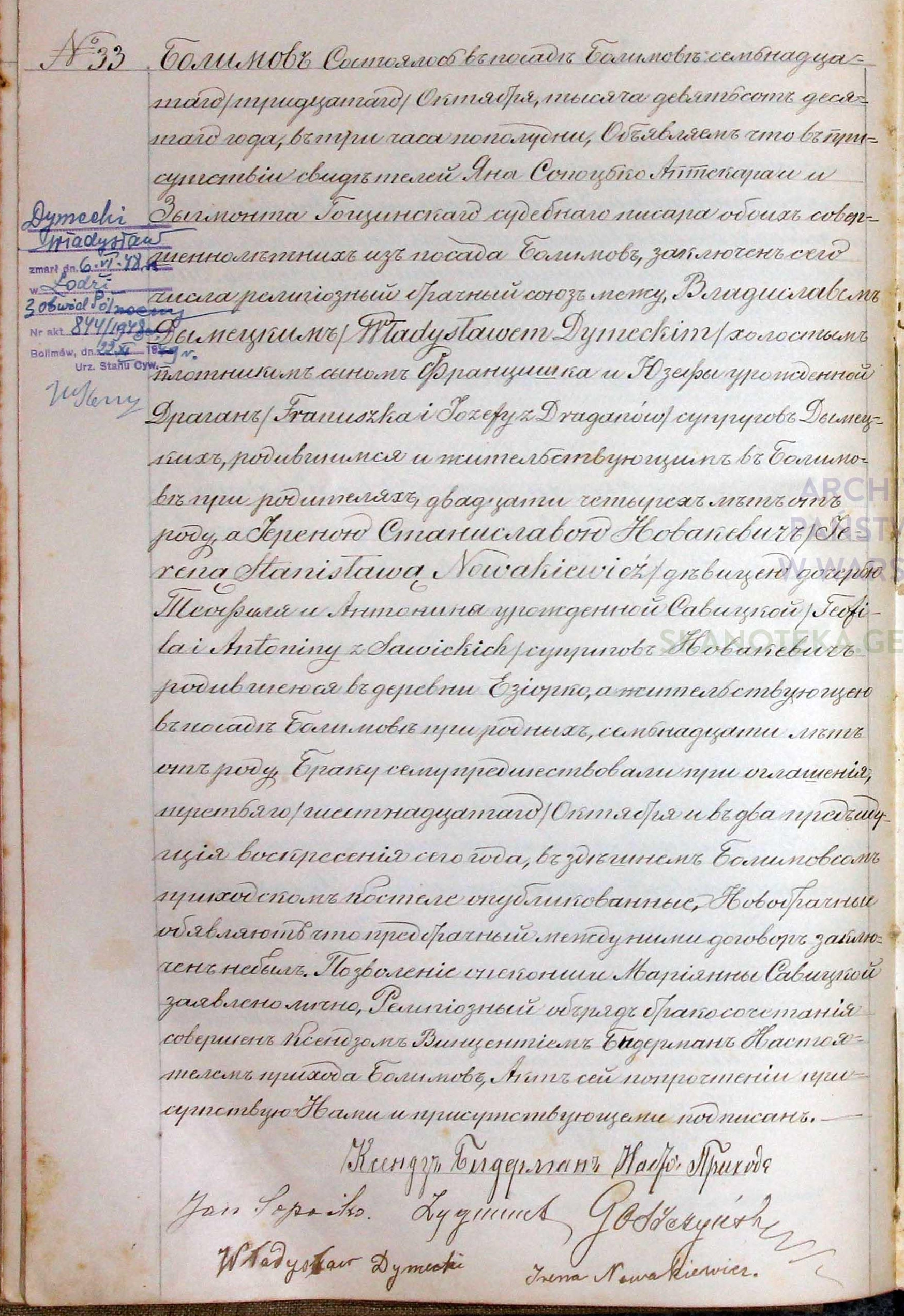 | sw.1320562 | sw.1320562 | sw.320956 (sw.320956) | sw.865535 (sw.865535) | Akt małżeństwa: Bolimów (obecn. woj. łódz.), 33/1910 [indeks na http://geneteka.genealodzy.pl/] http://metryki.genealodzy.pl/metryki.php?op=kt&ar=11&zs=0213d&sy=1910&kt=2 [podgląd] |