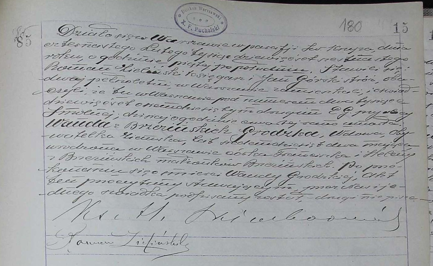 | sw.329163 | le.1098.8.14 (le.1098.8.14) | 1878 | xpar.1441 | Akt małżeństwa: Warszawa Przemienienie Pańskie (obecn. m. Warszawa), rok 1878, nr aktu 46 [indeks na http://geneteka.genealodzy.pl/] http://metryki.genealodzy.pl/metryki.php?op=kt&ar=1&zs=1216d&sy=1878&kt=2 [podgląd] | Akt ślubu obecny w bazie Geneteka | |||||