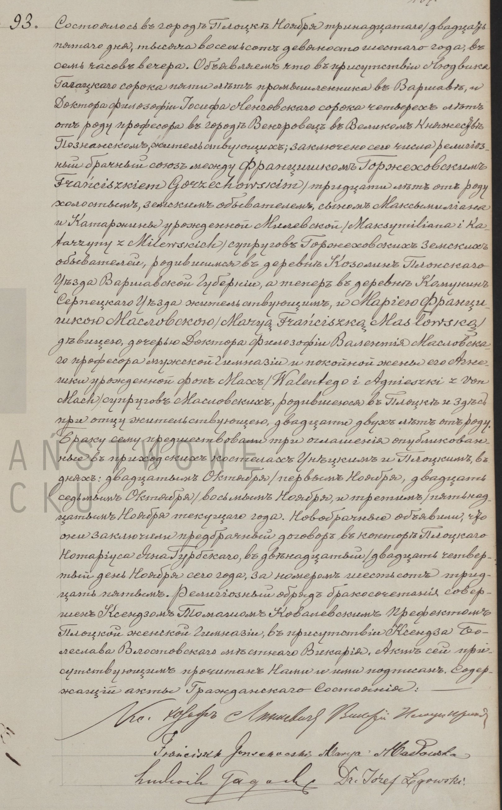 | sw.335135 | m | Walenty | | | | | Masłowski | | | | | Akt małżeństwa: Płock (obecn. woj. mazow.), 49/1886 [indeks na http://geneteka.genealodzy.pl/] https://szukajwarchiwach.pl/50/155/0/-/118/str/1/1/1000#tabSkany [podgląd] |