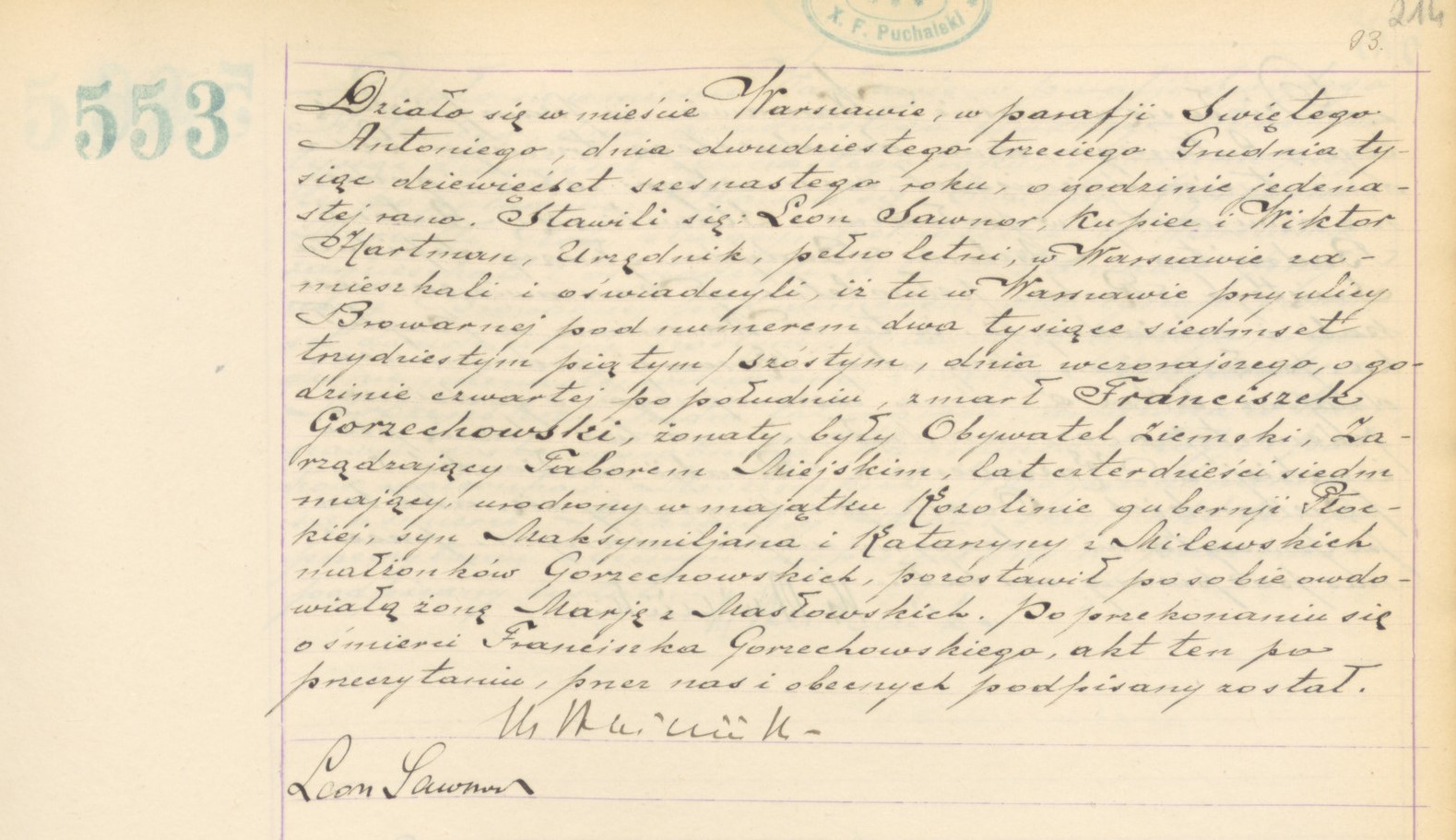 | sw.336499 | sw.336502 (sw.336502) | Akt małżeństwa: Płock (obecn. woj. mazow.), 93/1896 [indeks na http://geneteka.genealodzy.pl/] http://szukajwarchiwach.pl/50/155/0/-/138#tabSkany [podgląd] | ||||||||