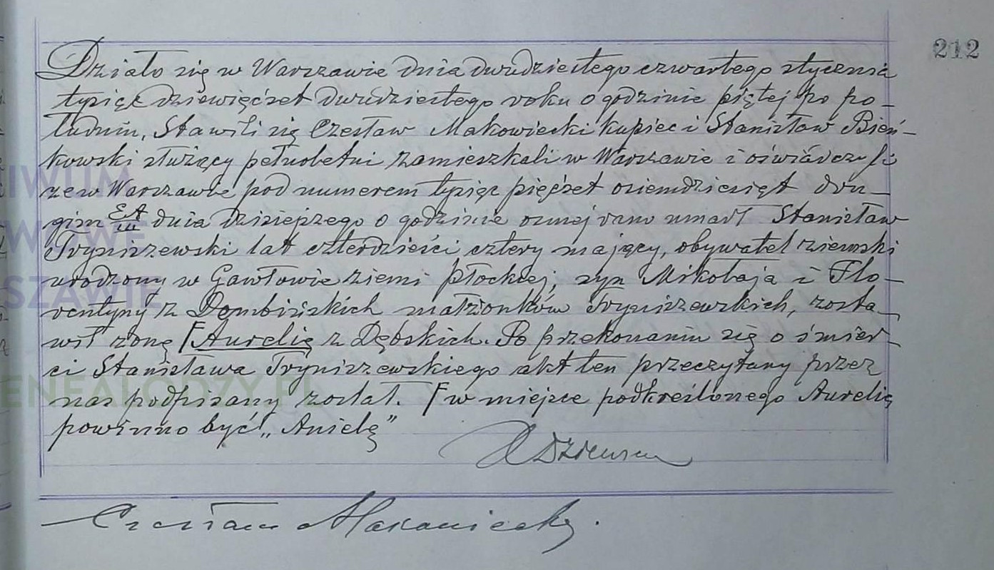 | genetekaz.11665618 | 24 | jan | 1920 | | xpar.1446 | Akt zgonu: Warszawa św. Barbara (obecn. m. Warszawa), 212/1920 http://localhost/mjm/barbara_1920_0208-0213.jpg [podglad] | | Akt zgonu obecny w bazie Geneteka |