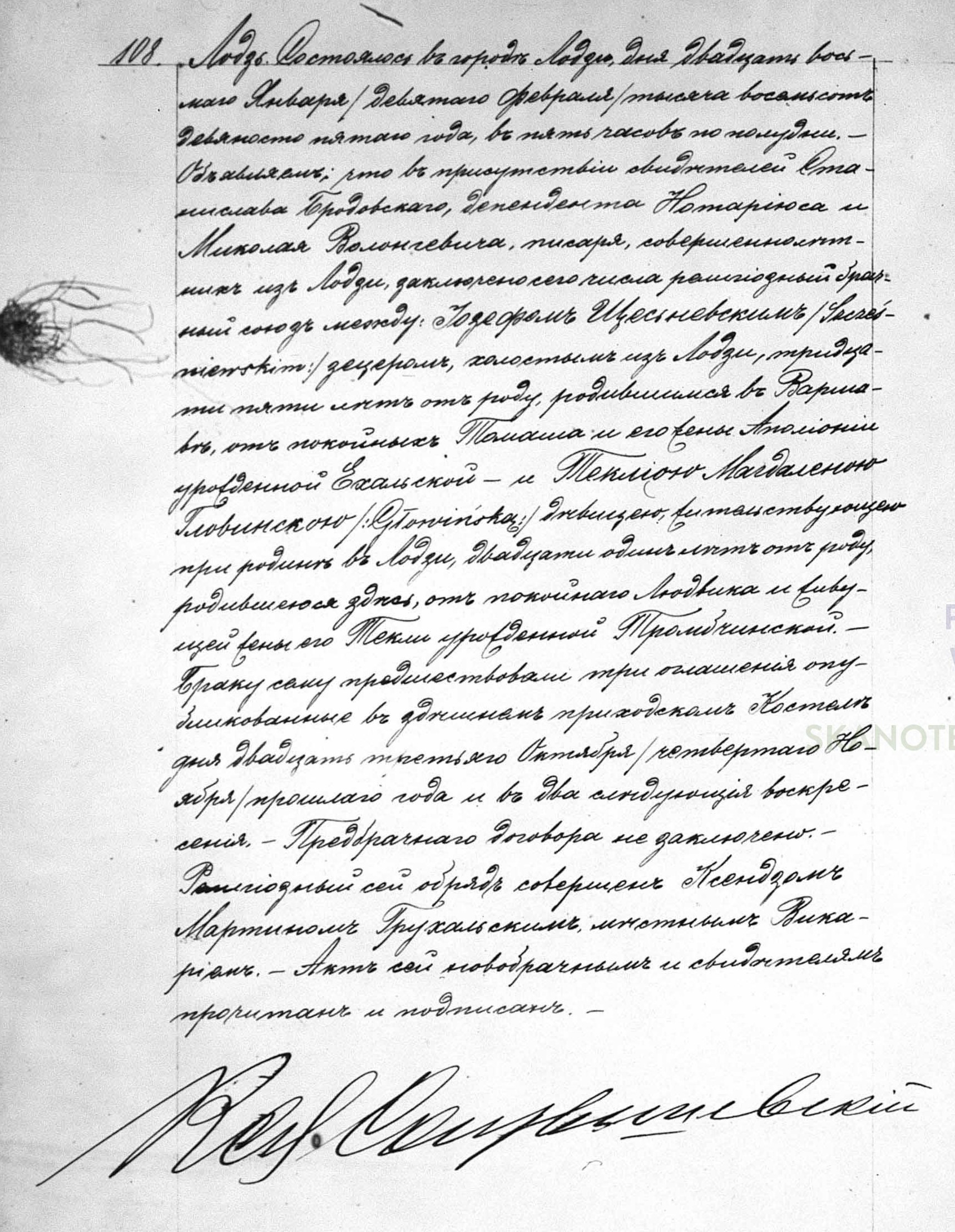 | sw.434606 | sw.434606 | sw.432169 (sw.343289) | sw.432172 (sw.343290) | Akt małżeństwa: Łódź NMP (obecn. woj. łódz.), 108/1895 [indeks na http://geneteka.genealodzy.pl/] http://metryki.genealodzy.pl/metryki.php?op=kt&ar=3&zs=1562d&sy=1895&kt=3 [podgląd] |