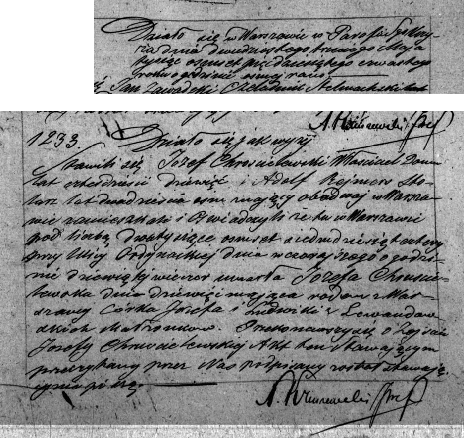 | sw.571356 | sw.571356 | sw.343589 (sw.343589) | sw.343590 (sw.343590) | Akt zgonu: Warszawa, par. św. Krzyża (obecn. m. Warszawa), 1233/1854 [indeks na http://geneteka.genealodzy.pl/] http://szukajwarchiwach.pl/72/158/0/-/27/skan/full/hY8_053lQgSSYLa4nz8mXw [podgląd] |