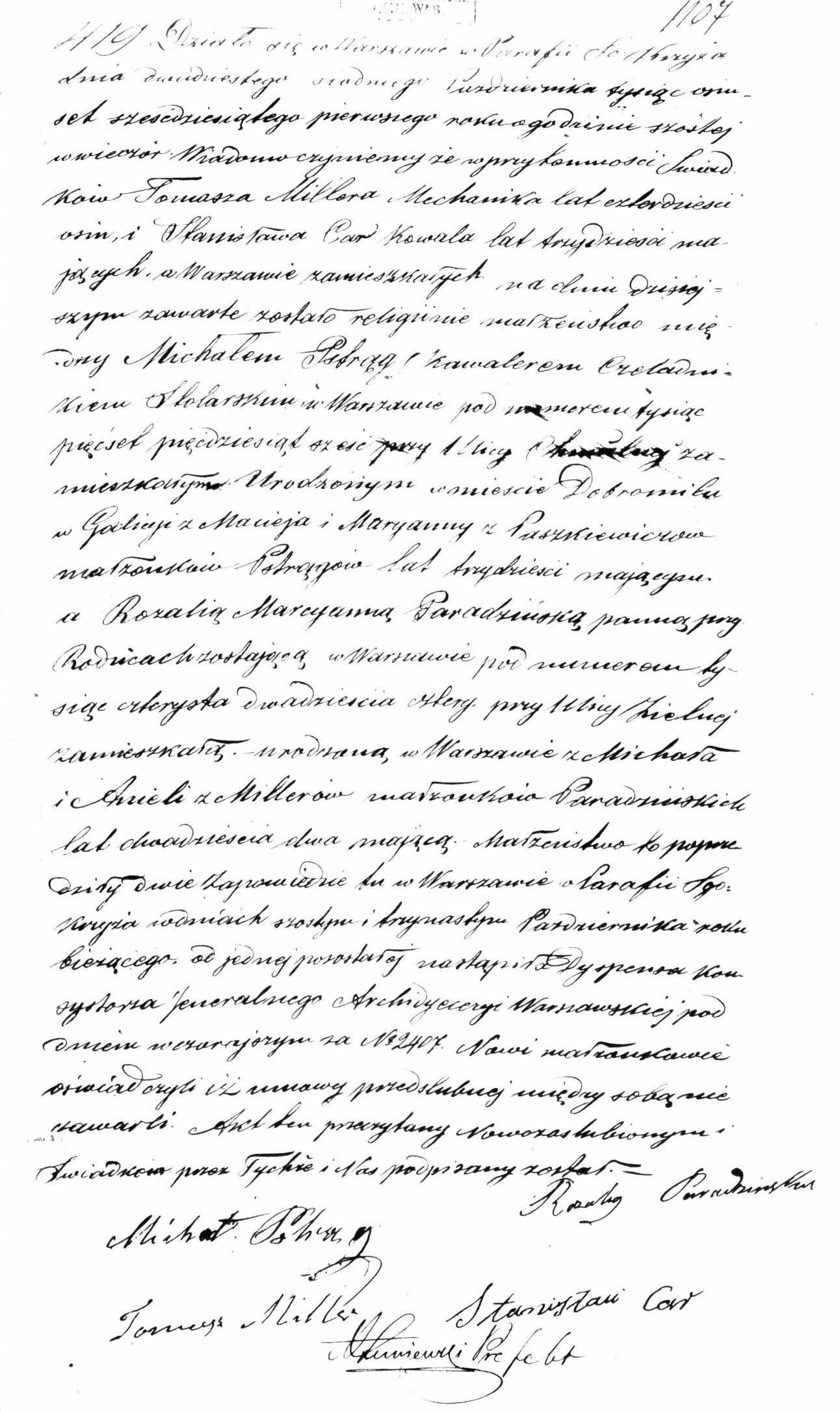| sw.426323 | sw.453045 | sw.453046 (sw.344021) | sw.453047 (sw.344022) | Akt małżeństwa: Warszawa Przemienienie Pańskie (obecn. m. Warszawa), 17/1871 [indeks na http://geneteka.genealodzy.pl/] http://metryki.genealodzy.pl/metryki.php?op=kt&ar=1&zs=1216d&sy=1871&kt=2 [podgląd] |