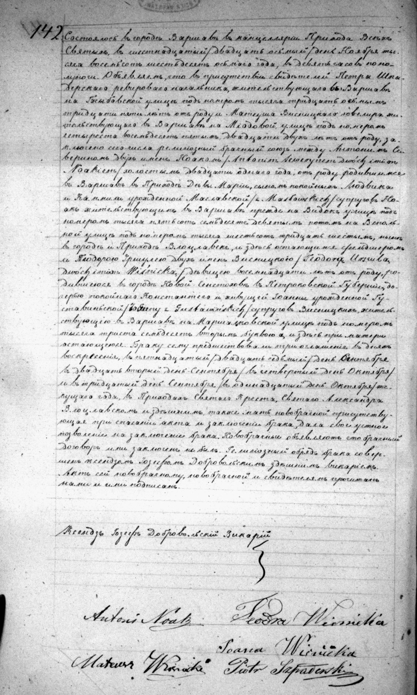 | sw.344559 | sw.344559 | sw.344072 (teatr.42566.2) | sw.344073 (sw.344073) | Akt małżeństwa: Warszawa Wsz. Św. (obecn. m. Warszawa), 142/1868 [indeks na http://geneteka.genealodzy.pl/] http://metryki.genealodzy.pl/metryka.php?ar=8&zs=9264d&sy=300&kt=3&skan=142.jpg [podgląd] |