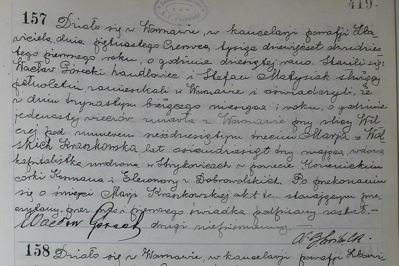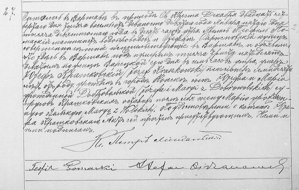 | sw.345498 | sw.345499 (sw.345499) | sw.345500 (sw.345500) | Akt małżeństwa: Warszawa św. Andrzej (obecn. m. Warszawa), 60/1884 [indeks na http://geneteka.genealodzy.pl/] http://metryki.genealodzy.pl/metryki.php?op=kt&ar=1&zs=0159d&sy=1884&kt=2 [podgląd] |