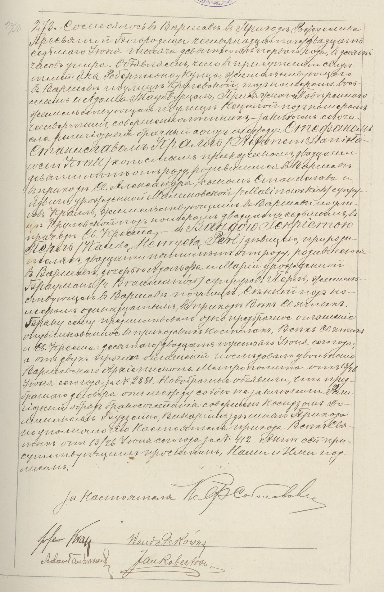 | sw.247952 | sw.1133283 | sw.1133284 (sw.346123) | sw.1133285 (sw.346124) | Akt małżeństwa: Warszawa-Leszno Narodzenie NMP (obecn. m. Warszawa), 273/1901 [indeks na http://geneteka.genealodzy.pl/] http://metryki.genealodzy.pl/metryki.php?op=kt&ar=1&zs=1217d&sy=1901c&kt=3 [podgląd] |