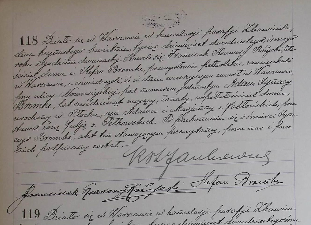| sw.346995 | m | Adam | Ignacy | | | | | | | | | Akt małżeństwa: Płock (obecn. woj. mazow.), 62/1895 [indeks na http://geneteka.genealodzy.pl/] http://szukajwarchiwach.pl/50/155/0/-/136#tabSkany [podgląd] |