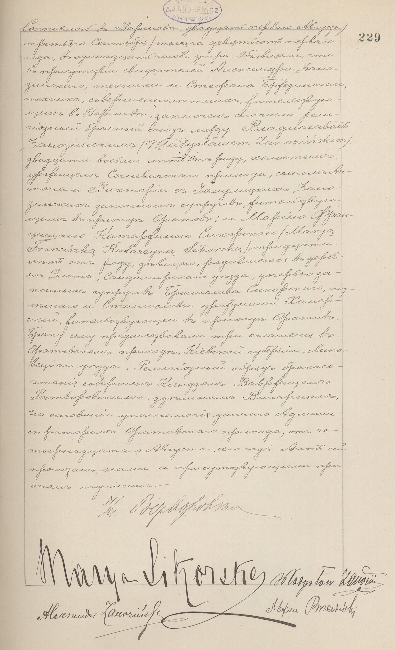 | sw.523445 | sw.523446 (sw.523446) | sw.523447 (sw.523447) | Akt małżeństwa: Zamość (obecn. woj. lubel.), 11/1870 [indeks na http://lubgens.eu/] http://szukajwarchiwach.pl/88/647/0/-/1/skan/full/7Cg1EhiyDUNukLShMe0IsA [podgląd] |