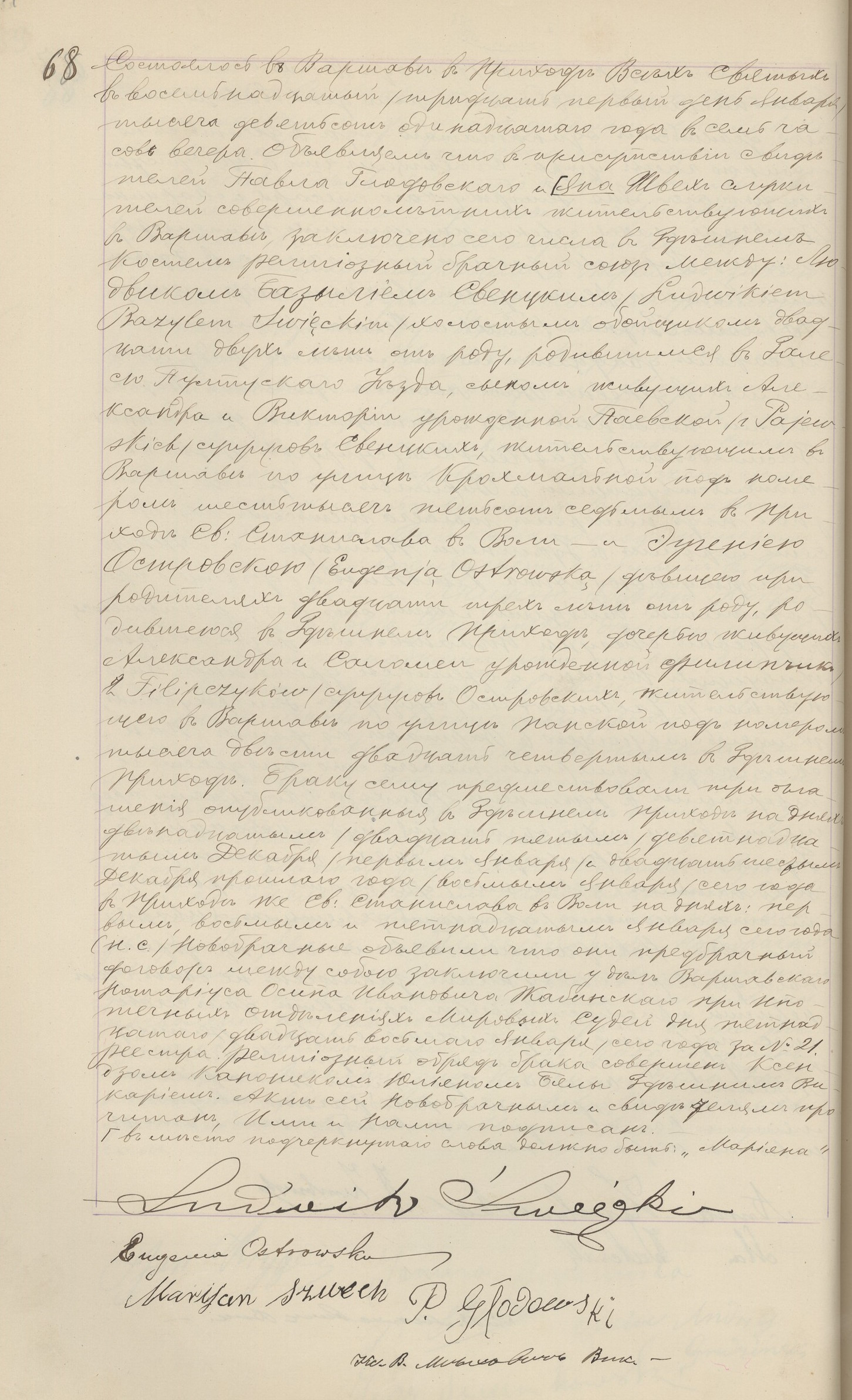 | sw.348318 | sw.348318 | sw.348319 (sw.348319) | sw.348320 (sw.348320) | Akt małżeństwa: Warszawa Wsz. Św. (obecn. m. Warszawa), 68/1911 [indeks na http://geneteka.genealodzy.pl/] http://metryki.genealodzy.pl/metryka.php?ar=8&zs=9264d&sy=335&kt=1&skan=068.jpg [podgląd] |