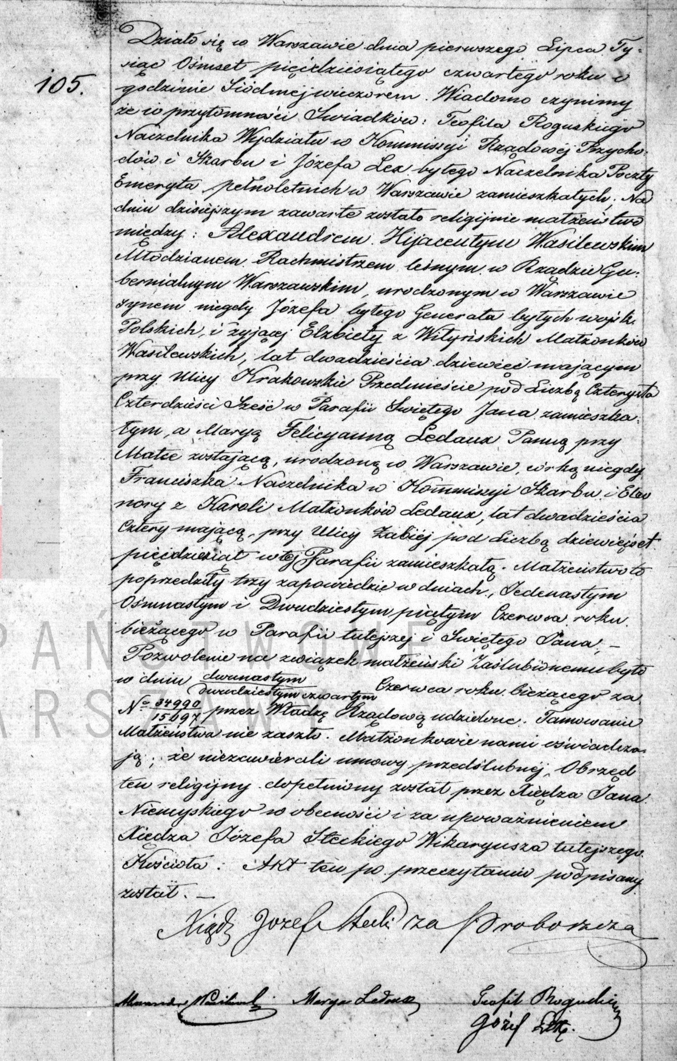 | sw.411567 | sw.160927 (sw.160927) | sw.160928 (sw.160928) | Akt małżeństwa: Warszawa św. Andrzej (obecn. m. Warszawa), 105/1854 [indeks na http://geneteka.genealodzy.pl/] http://metryki.genealodzy.pl/metryki.php?op=kt&ar=1&zs=0159d&sy=1854&kt=2 [podgląd] |
