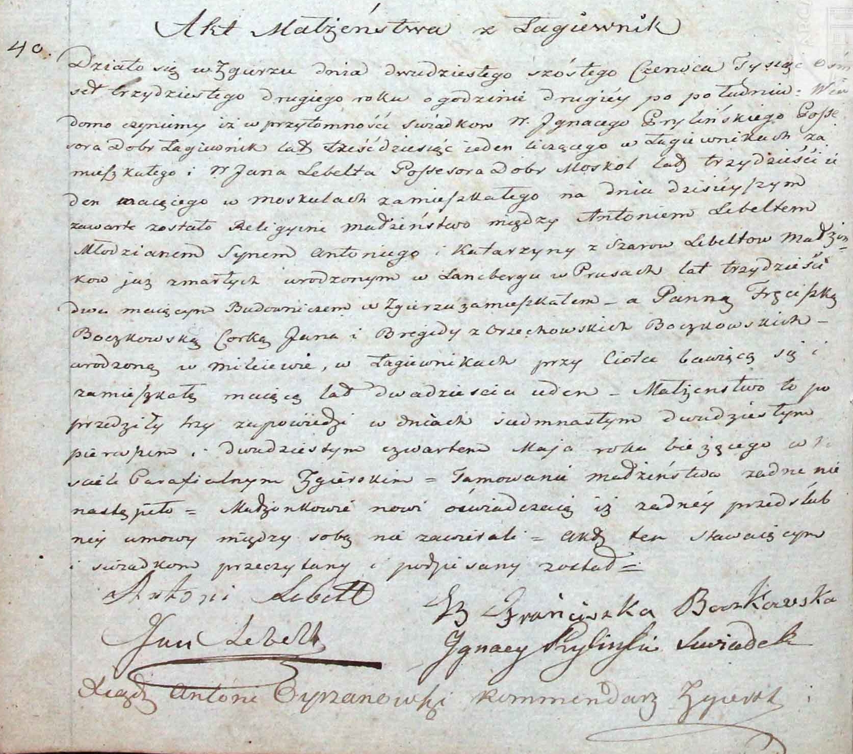 | sw.356430 | sw.356431 (sw.356431) | 18 | aug | 1812 | | xpar.238 | Akt małżeństwa: Bełdów (obecn. woj. łódz.), rok 1812, nr aktu 9 [indeks na http://geneteka.genealodzy.pl/] https://www.familysearch.org/ark:/61903/3:1:3Q9M-CS1G-VN53?i=413&cat=816147 | | | Akt ślubu obecny w bazie Geneteka |
