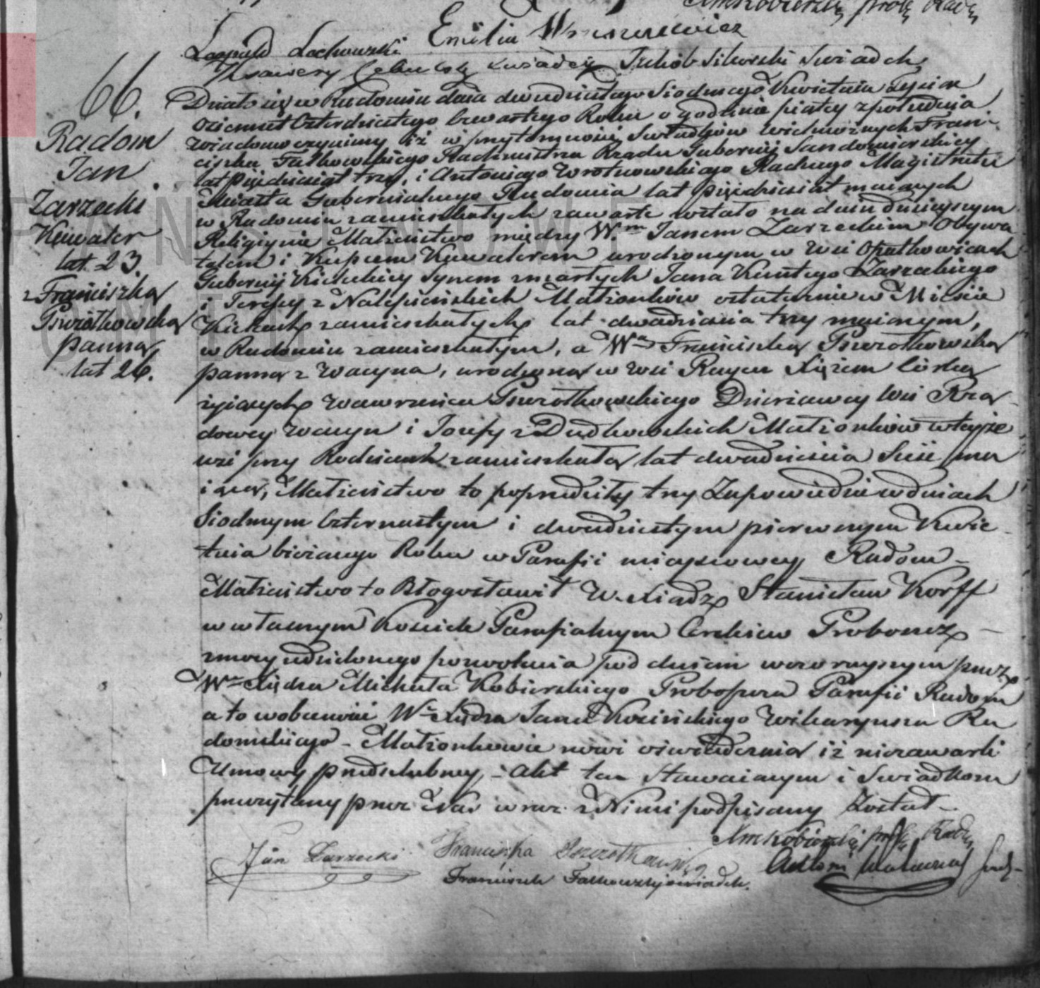 | sw.682173 | sw.682174 (sw.460269) | sw.682175 (sw.460270) | Akt małżeństwa: Radom (obecn. woj. mazow.), 66/1844 [indeks na http://geneteka.genealodzy.pl/] https://familysearch.org/ark:/61903/3:1:S3HT-DZH9-BM [podgląd] |