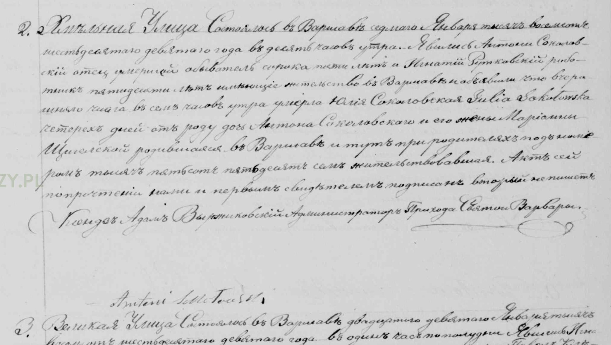 | sw.492981 | sw.497407 | sw.358496 (sw.358496) | sw.358497 (sw.358497) | Akt zgonu: Warszawa św. Barbara (obecn. m. Warszawa), 14/1870 [indeks na http://geneteka.genealodzy.pl/] http://szukajwarchiwach.pl/72/1214/0/-/3/skan/full/rDvLbCSS6adTiTsTCzyJvg [podgląd] |