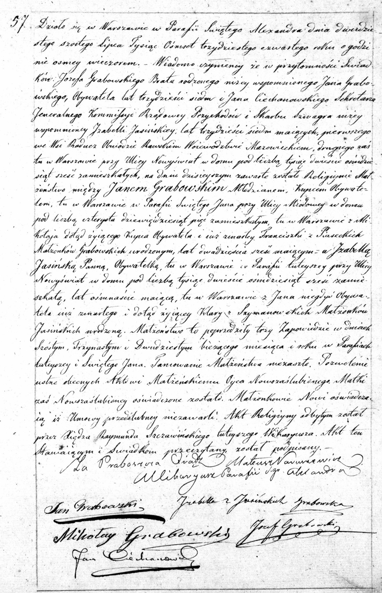 | sw.36191 | sw.120025 (sw.120025) | 1834 | xpar.1442 | Akt małżeństwa: Warszawa św. Aleksander (obecn. m. Warszawa), rok 1834, nr aktu 57 [indeks na http://geneteka.genealodzy.pl/] http://metryki.genealodzy.pl/metryki.php?op=kt&ar=8&zs=9214d&sy=302&kt=2 [podgląd] | Akt ślubu obecny w bazie Geneteka |