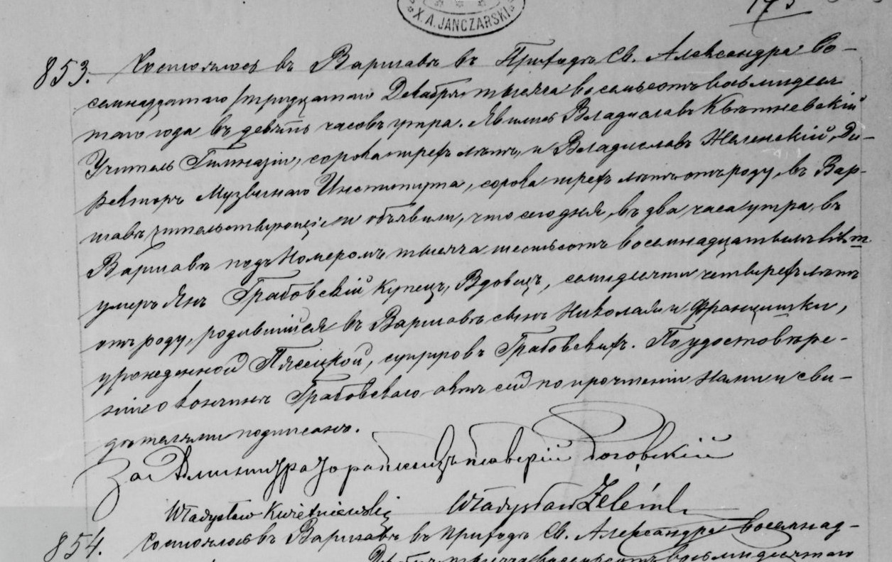 | genetekaz.11330881 | 30 | dec | 1880 | xpar.1442 | Akt zgonu: Warszawa św. Aleksander (obecn. m. Warszawa), 853/1880 http://localhost/mjm/aleksander_1880_158_109_0507.jpg [podglad] | Akt zgonu obecny w bazie Geneteka | ||