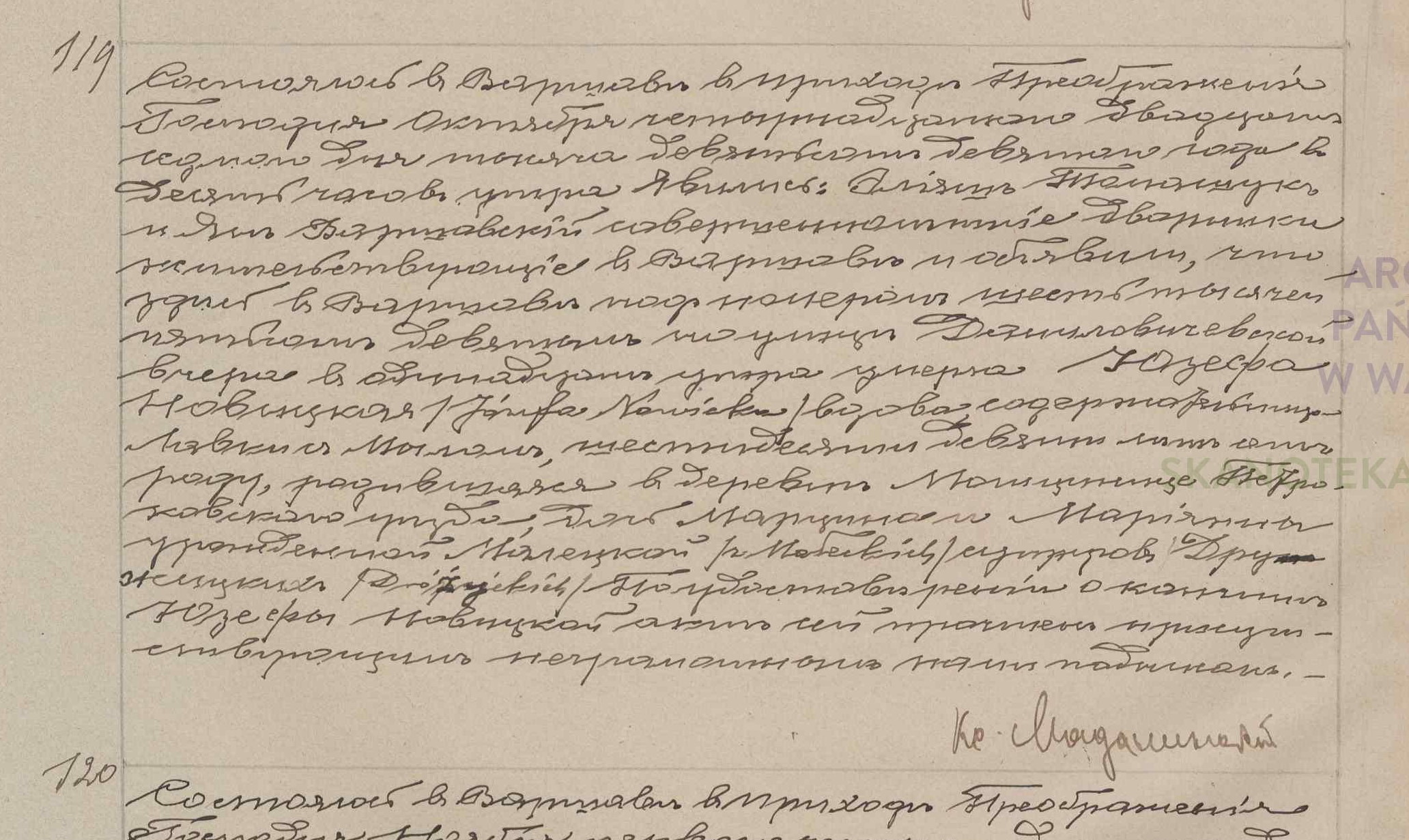 | genetekaz.11242796 | 26 | oct | 1909 | | xpar.1441 | Akt zgonu: Warszawa Przemienienie Pańskie (obecn. m. Warszawa), 119/1909 http://metryki.genealodzy.pl/metryki.php?op=kt&ar=1&zs=1216d&sy=1909&kt=3 [podglad] | | Akt zgonu obecny w bazie Geneteka |