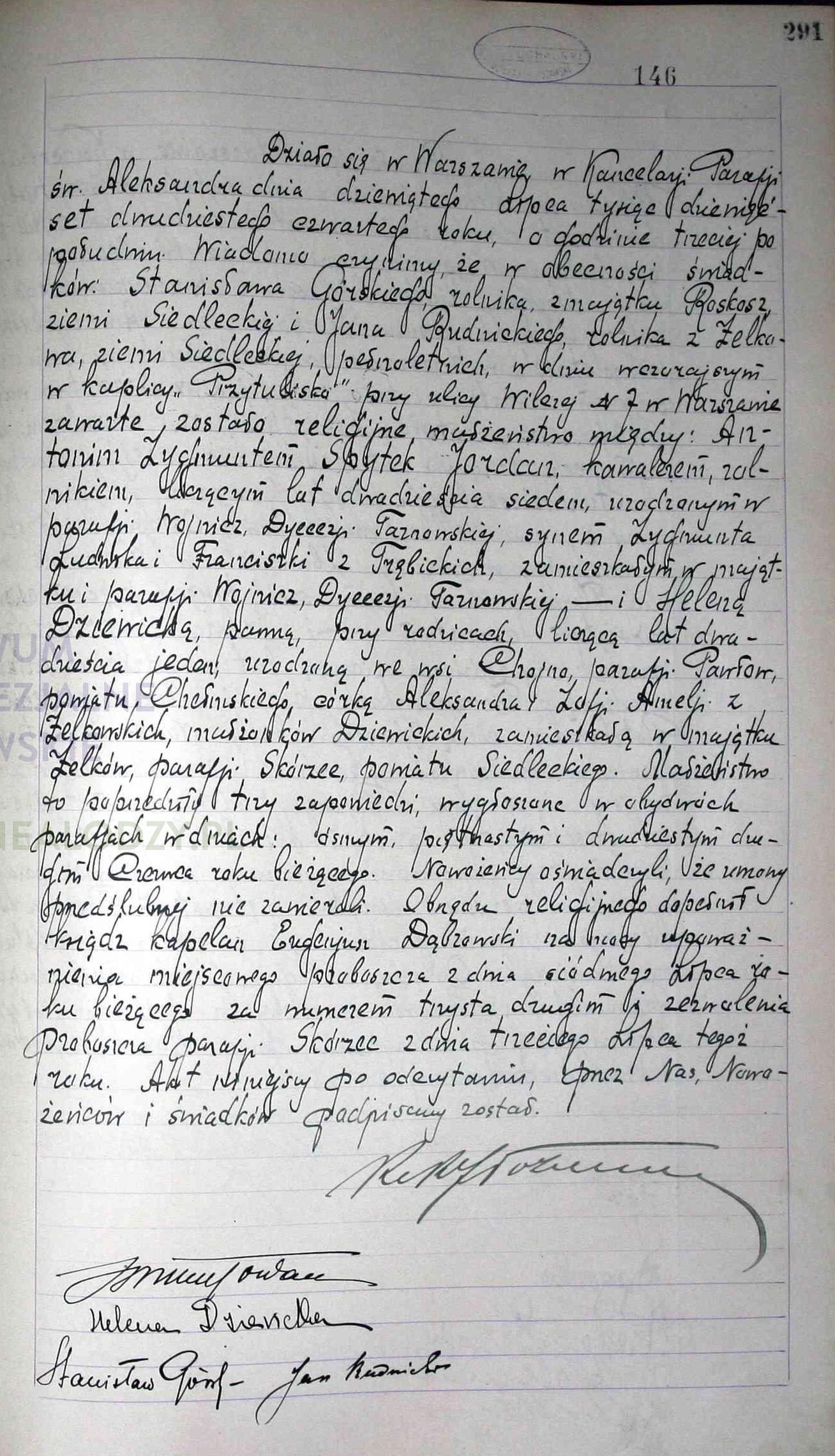 | sw.400180 | | | | | xpl.wojnicz | | | Akt małżeństwa: Warszawa św. Aleksander (obecn. m. Warszawa), 291/1924 [indeks na http://geneteka.genealodzy.pl/] http://metryki.genealodzy.pl/metryki.php?op=kt&ar=8&zs=9214d&sy=340&kt=1 [podgląd] |