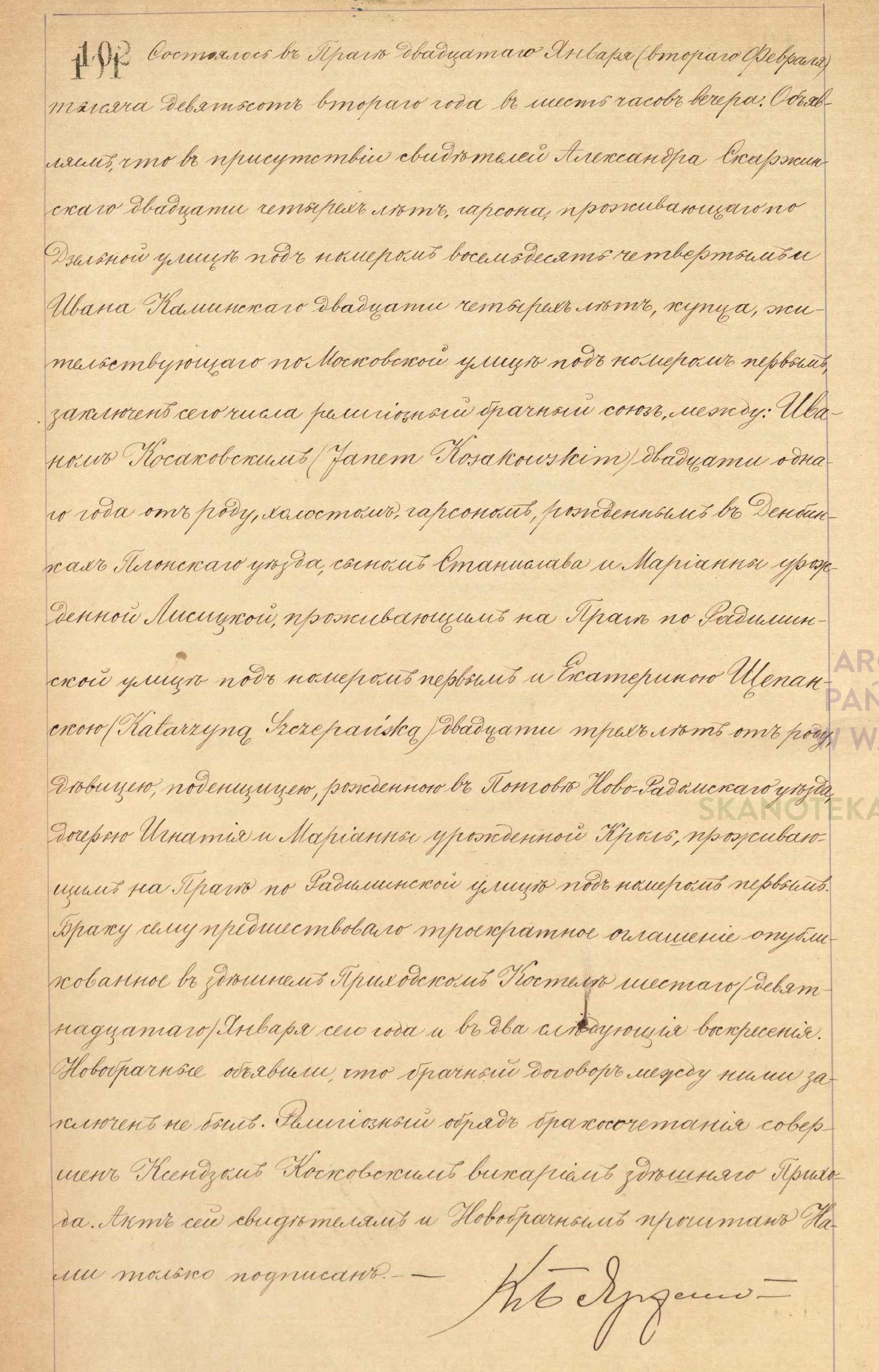 | sw.1159061 | sw.1159061 | sw.794574 (sw.794574) | sw.389556 (sw.389556) | Akt małżeństwa: Warszawa-Praga MB Loretańska (obecn. m. Warszawa), 102/1902 [indeks na http://geneteka.genealodzy.pl/] https://metryki.genealodzy.pl/ar1-zs1328d-sy1902c-kt1 [podgląd] |