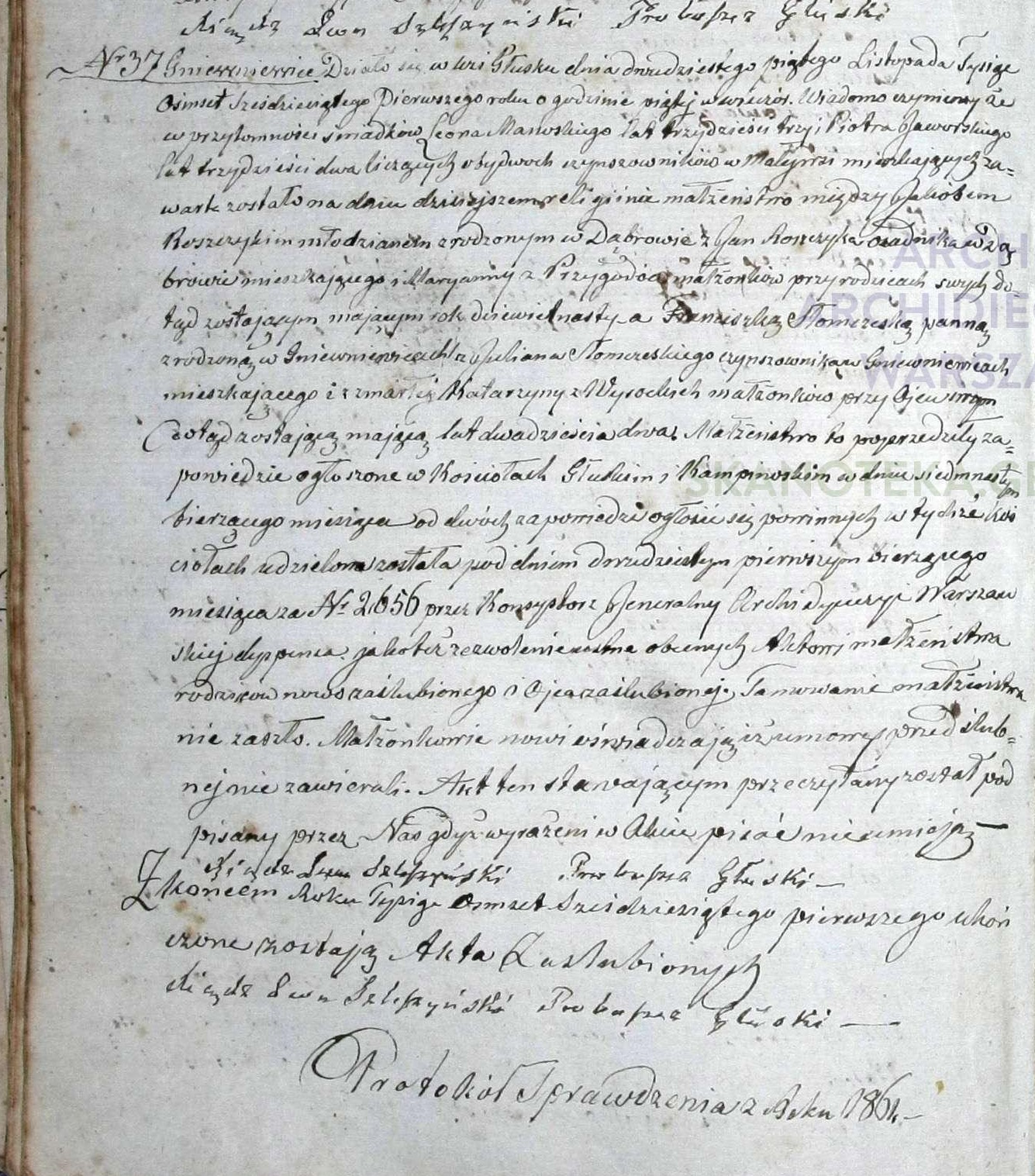 | sw.391157 | sw.383738 (sw.383738) | 25 | nov | 1861 | xpar.655 | Akt małżeństwa: Leoncin (obecn. woj. mazow.), rok 1861, nr aktu 37 [indeks na http://geneteka.genealodzy.pl/] http://metryki.genealodzy.pl/metryka.php?ar=8&zs=4183d&sy=4010&kt=1861&skan=037.jpg [podgląd] | Akt ślubu obecny w bazie Geneteka |