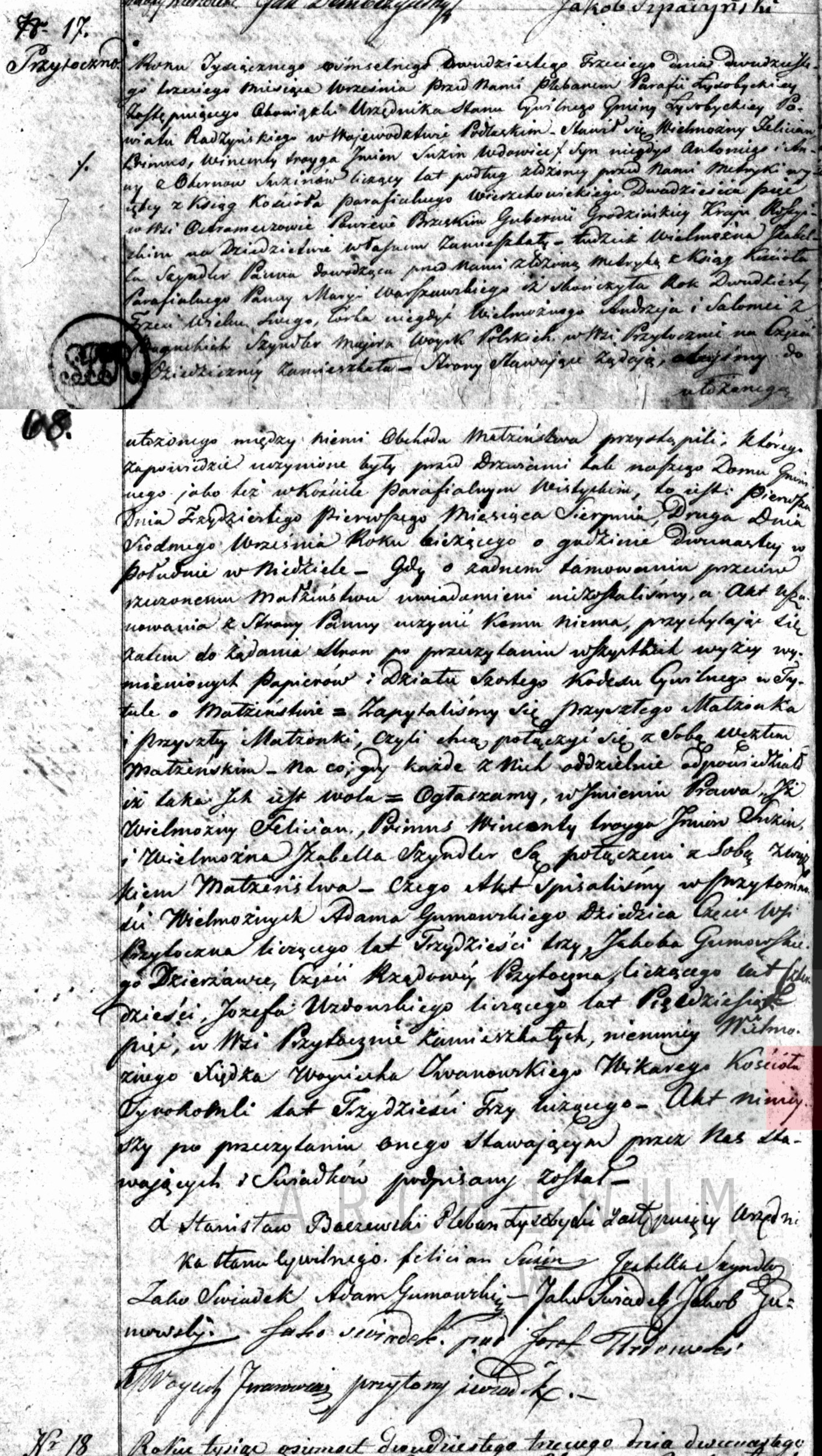| sw.521428 | f | Anna | | | | | Obyrn | | | | | Akt małżeństwa: Łysobyki / Jeziorzany (obecn. woj. lubel.), 17/1823 [indeks na http://lubgens.eu/] http://szukajwarchiwach.pl/35/1873/0/1/13/skan/full/46G676RGbzEs27jTBRGsnw [podgląd] |