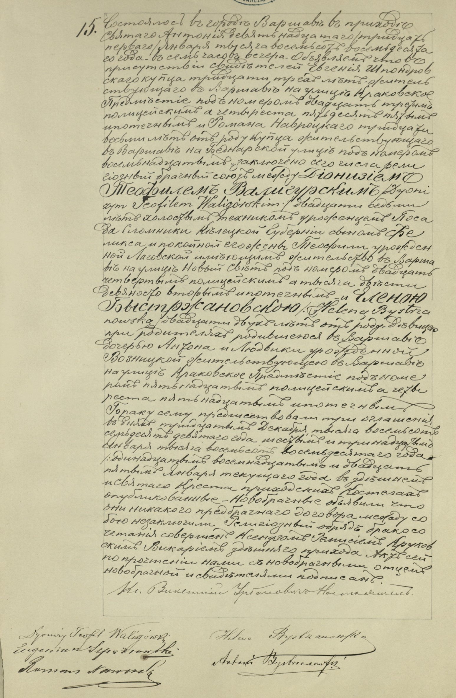 | sw.406297 | | | 1853 | | | | rodzi dziecko | Akt małżeństwa: Warszawa św. Antoni (obecn. m. Warszawa), 15/1880 [indeks na http://geneteka.genealodzy.pl/] http://metryki.genealodzy.pl/metryki.php?op=kt&ar=1&zs=1218d&sy=1880&kt=2 [podgląd] |