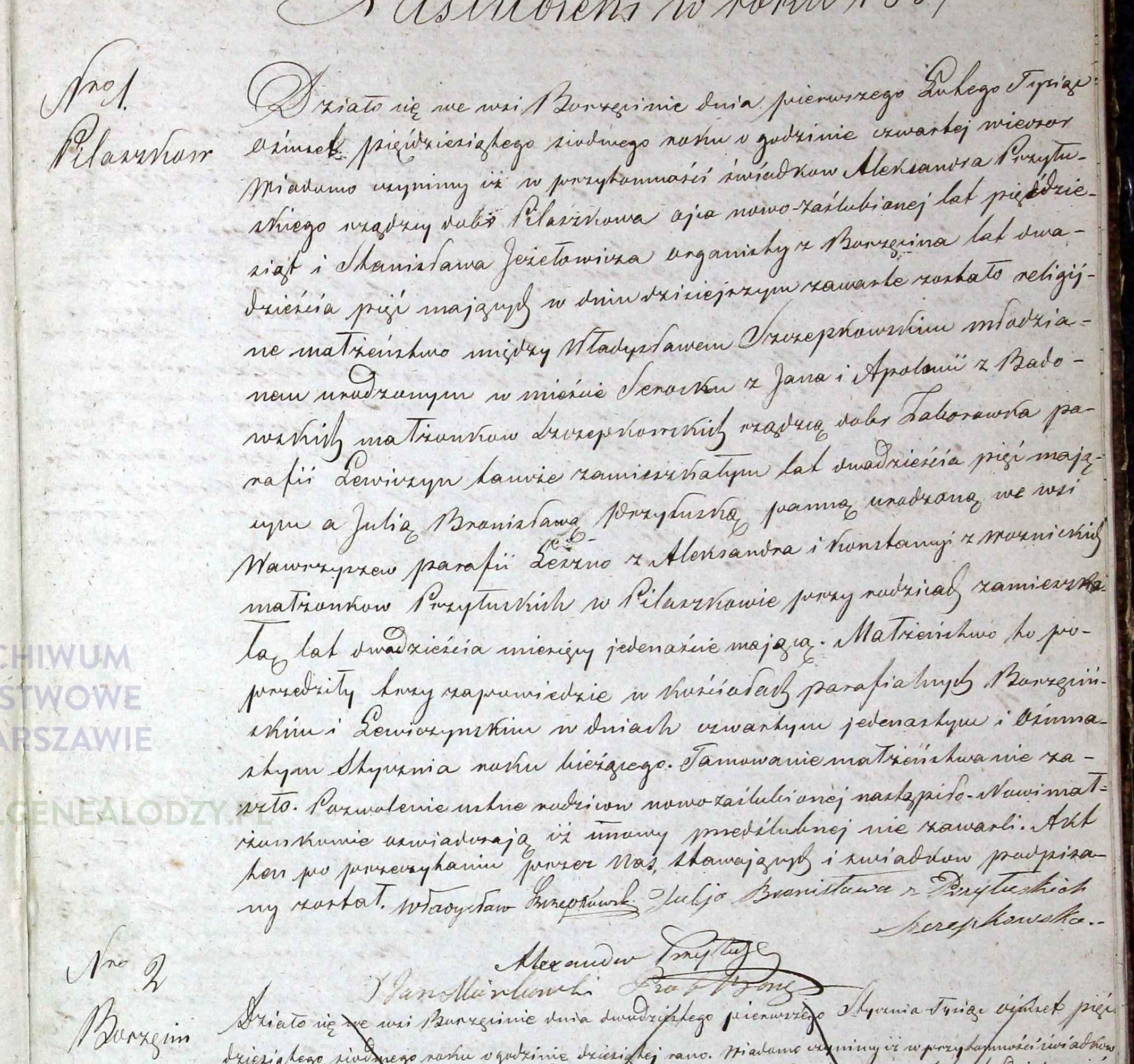 | sw.670067 | sw.769528 | sw.765975 (sw.412940) | sw.765976 (sw.412941) | Akt małżeństwa: Borzęcin (obecn. woj. mazow.), 1/1857 [indeks na http://geneteka.genealodzy.pl/] http://metryki.genealodzy.pl/metryki.php?op=kt&ar=2&zs=0033d&sy=1857&kt=2 [podgląd] |