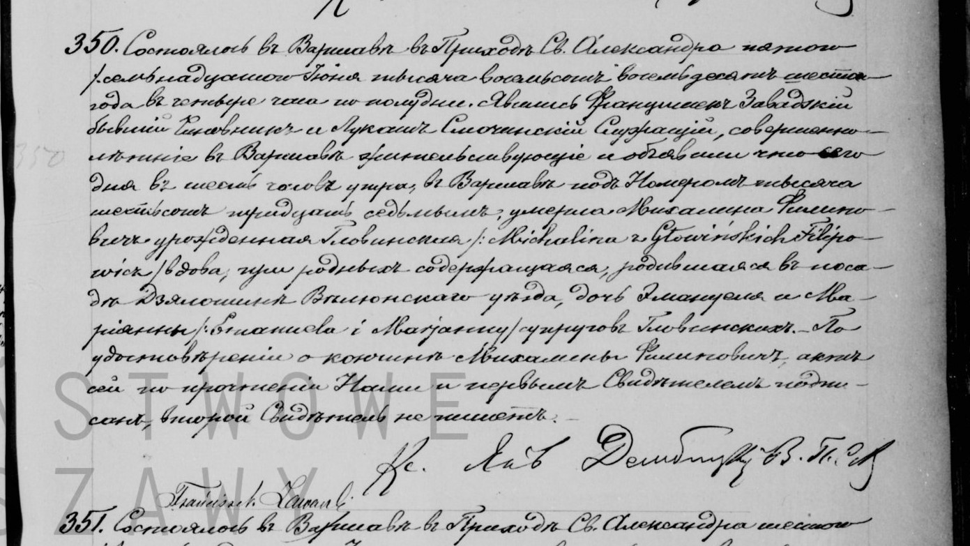 | genetekaz.7343518 | 17 | jun | 1886 | | xpar.1442 | Akt zgonu: Warszawa św. Aleksander (obecn. m. Warszawa), 350/1886 http://szukajwarchiwach.pl/72/162/0/-/108/str/1/2/100#tabSkany [podglad] | | Akt zgonu obecny w bazie Geneteka |