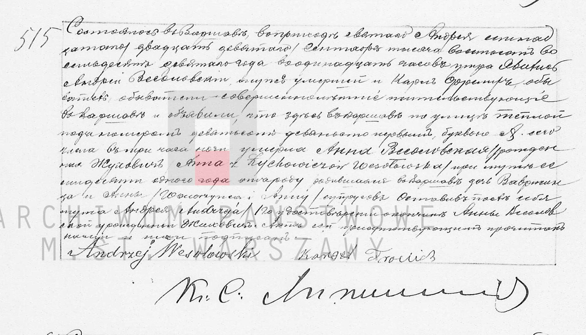 | sw.909182 | f | Anna | | | | | Żyłowicz | | | | | Akt małżeństwa: Ruszków (obecn. woj. świętok.), 8/1897 [indeks na http://geneteka.genealodzy.pl/] |