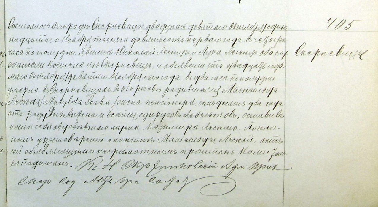 | genetekaz.8210658 | 9 | nov | 1901 | | xpar.402 | Akt zgonu: Skierniewice (obecn. woj. łódz.), 405/1901 [podglad] | | Akt zgonu obecny w bazie Geneteka |