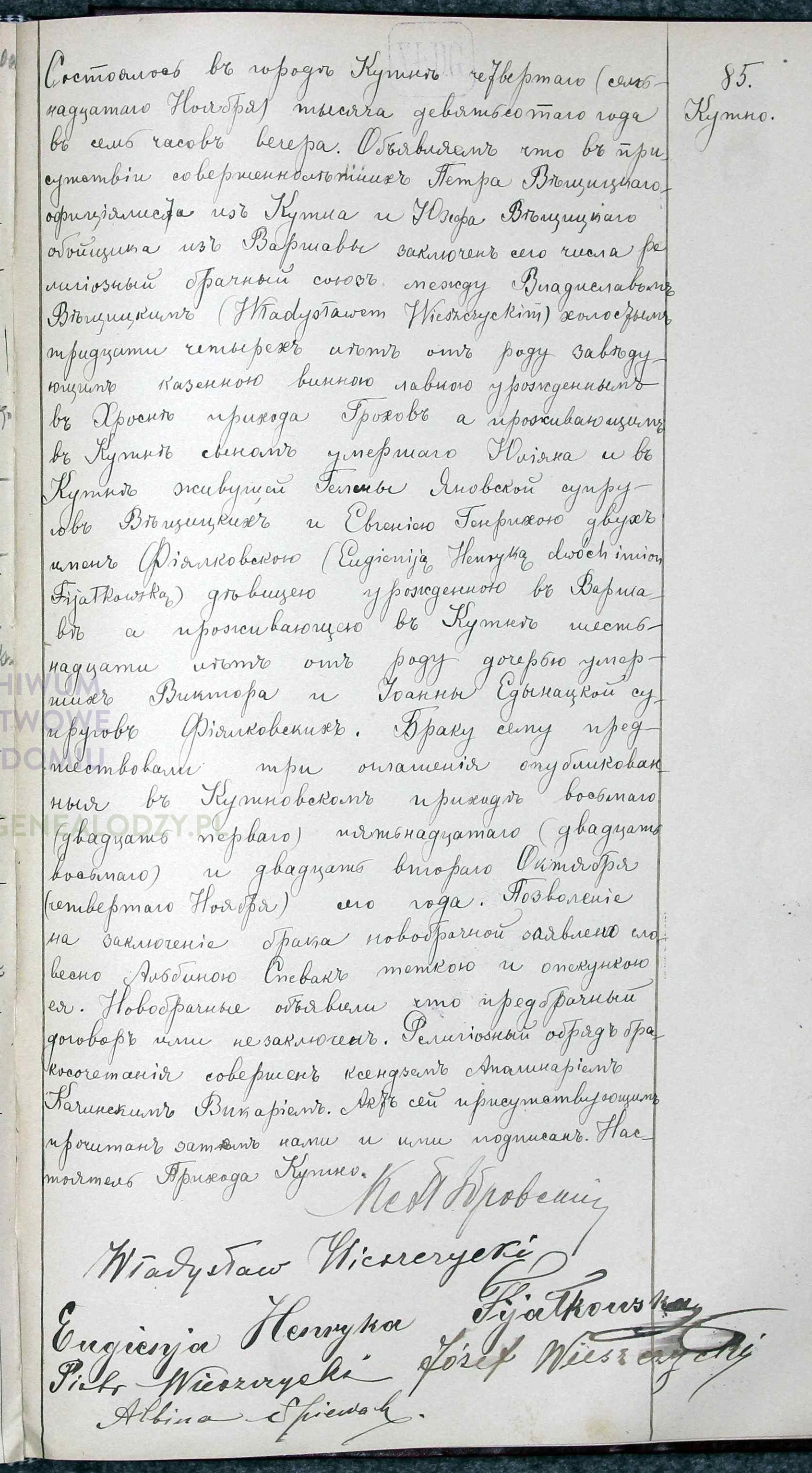 | sw.434897 | sw.434897 | sw.422077 (sw.422077) | sw.422080 (sw.422080) | Akt małżeństwa: Kutno (obecn. woj. łódz.), 85/1900 [indeks na http://geneteka.genealodzy.pl/] http://metryki.genealodzy.pl/metryka.php?ar=3&zs=1537d&sy=1900&kt=2&skan=84-85.jpg [podgląd] |