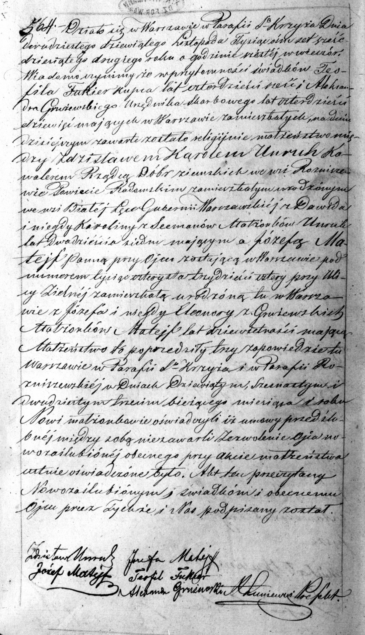 | sw.424432 | sw.424433 (sw.162453) | sw.424434 (sw.162454) | Akt małżeństwa: Warszawa św. Krzyż (obecn. m. Warszawa), 229/1837 [indeks na http://geneteka.genealodzy.pl/] http://metryki.genealodzy.pl/metryki.php?op=kt&ar=1&zs=0158d&sy=1837&kt=2 [podgląd] |